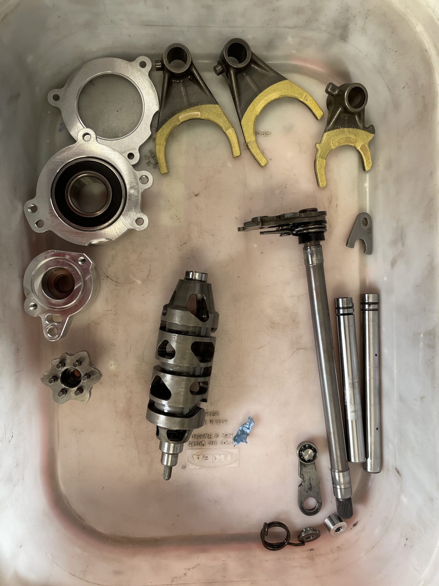 Habe hier ein Getriebe in äußerst gutem Zustand liegen. Da ich auf das Getriebe der HP4 Race umbaue, ist es übrig. Ansonsten würde ich es direkt wieder einbauen und selbst weiterfahren. Die Klauen sehen top aus, kein Verschleiß sichtbar, lediglich an den Losrädern sieht man Gebrauchsspuren. Auch die Schaltgabeln haben nur wenige Spuren. Schaltwelle fast neuwertig.