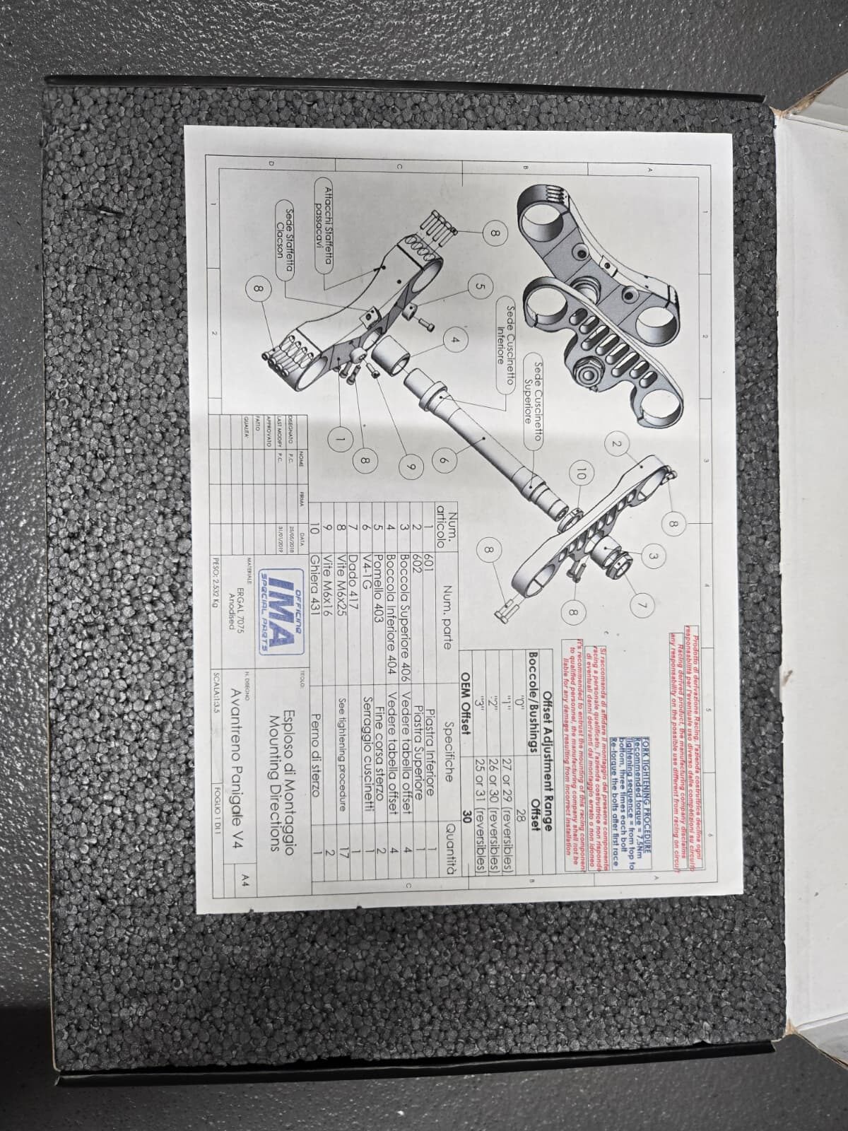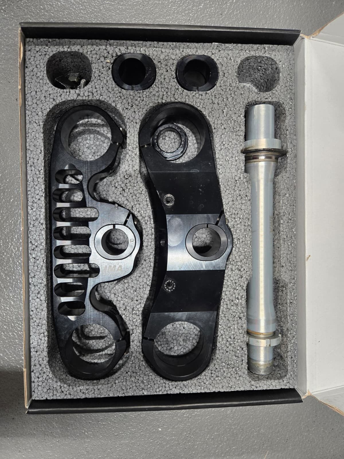 Zu verkaufen habe ich einen Komplettensatz Gabelbrücke von IMA mit Offest verstellung passend für Ducati Panigale V4.
