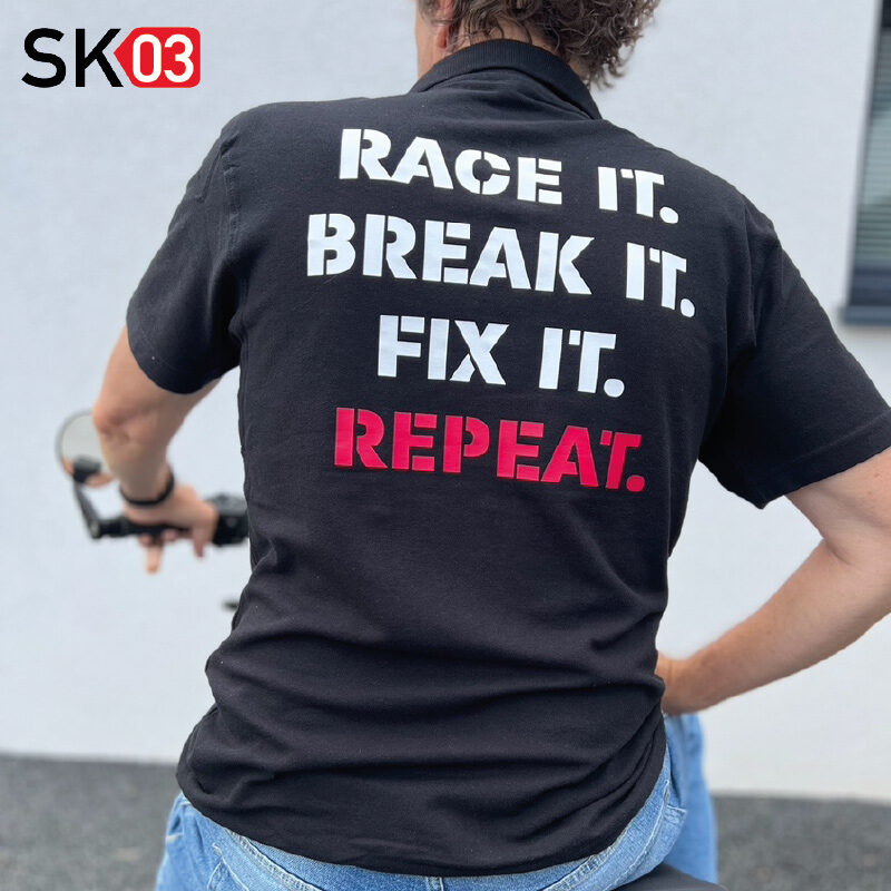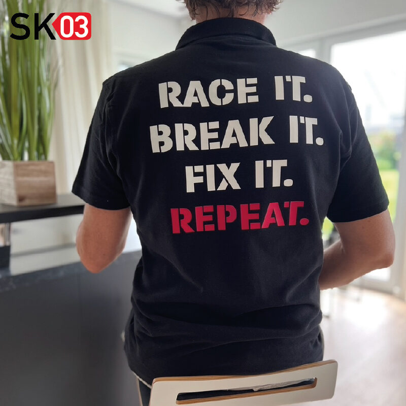 Polo Shirt – RACE IT, BREAK IT, FIX IT, REPEAT mit Startnummer und Name
