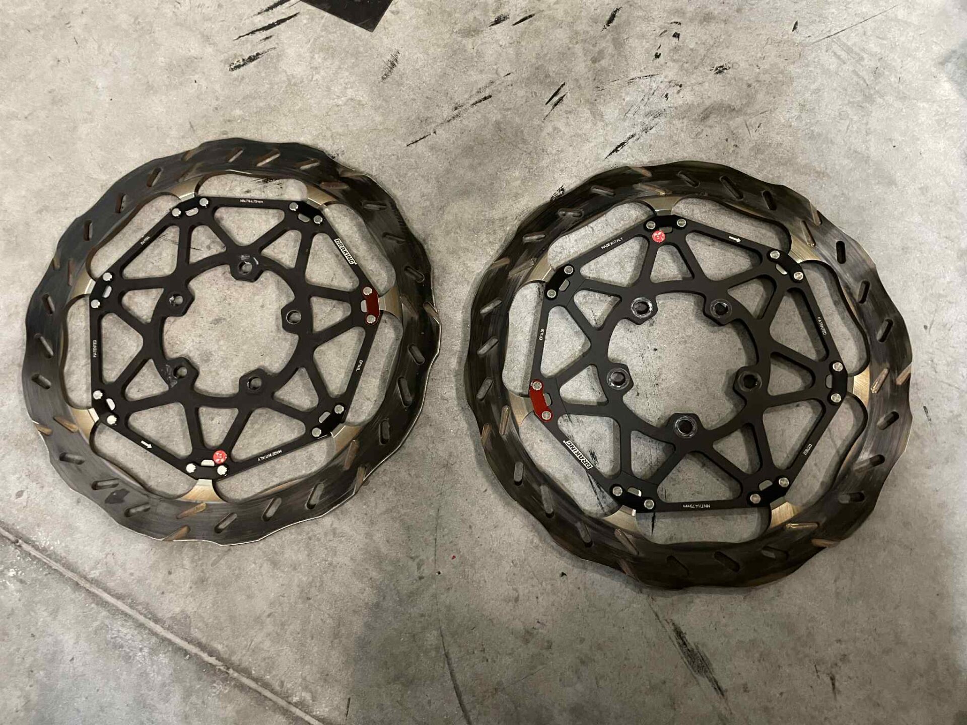A set of Braking (EPTA WAVE FLOATING AL-HUB 330) brake discs for a Kawasaki ZX-10R. They fit a 2016-2025 ZX-10R, but for sure on some more models.
