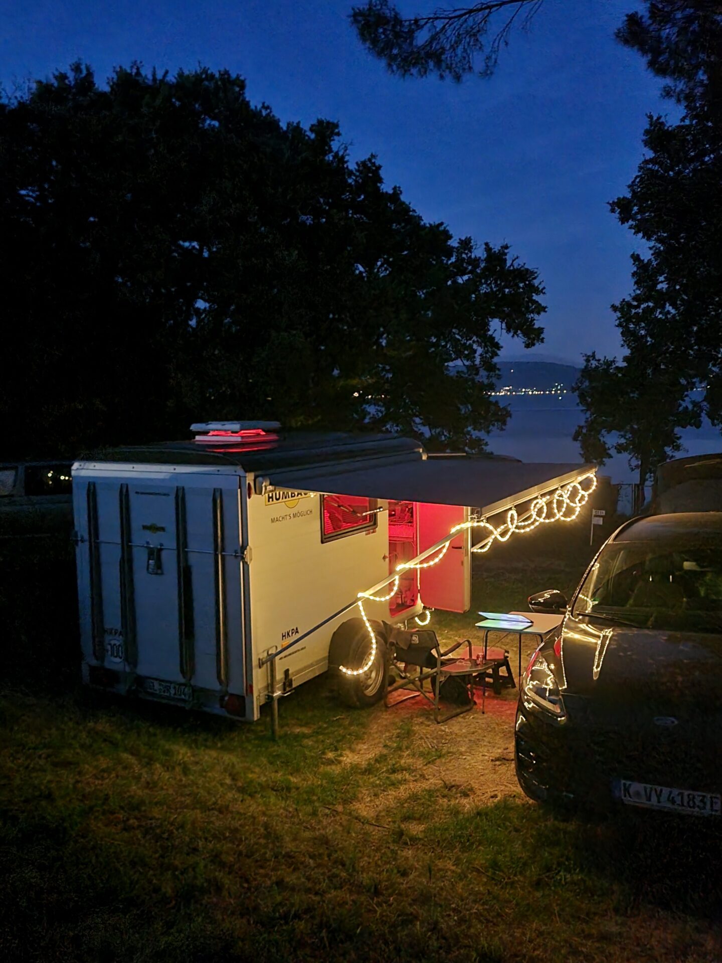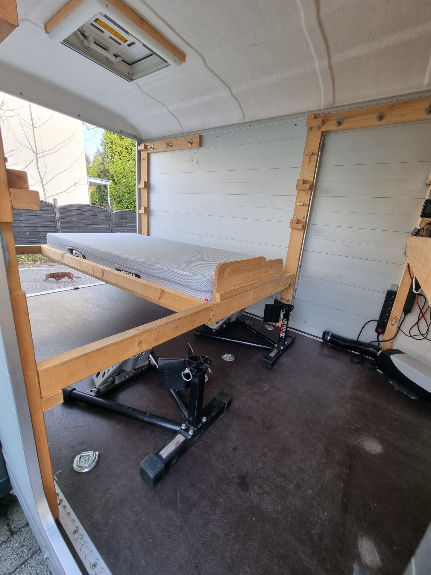 Der Listenpreis von dem Basis-Anhänger beträgt 9.000 EUR. Die Materialkosten für den von mir vorgenommenen Ausbau betrugen zirka 2.500 EUR und natürlich habe ich viele Stunden investiert. Ich habe den Anhänger neu gekauft, er ist also 1te Hand. Der Anhänger ist 3 Jahre alt, in gutem Zustand und hat keine Schäden/Mängel.