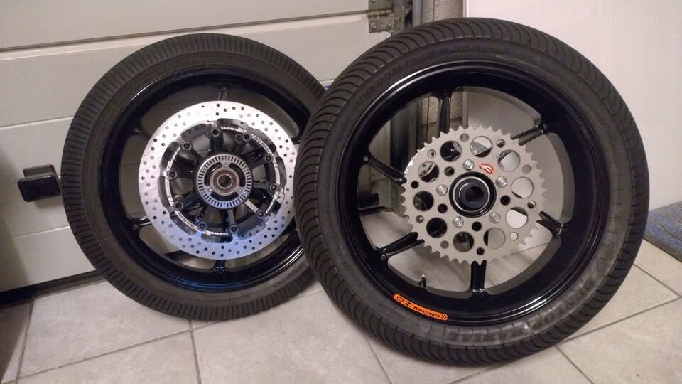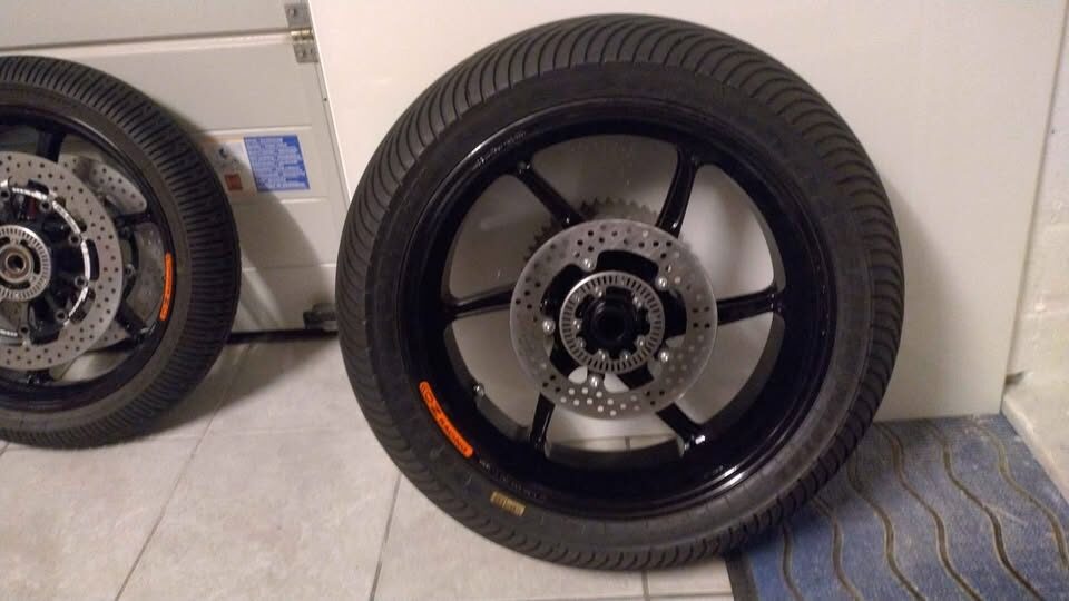 Complete set of wheels, original OZ magnesium for BMW M1000RR, 0 miles, never mounted on the bike. Brand new, only everything needed to ride is mounted on the wheels, so they are ready for use. No additional parts necessary. On sale for EUR 4.300 instead of EUR 4.585 at a recommended OZ dealer webshop and another shop has them on sale for EUR 4.392,61 instead of EUR 4.623, but both without all the accessoires needed to ride that are included in this sale. Asking now EUR 3.899 - so 15% discount on the wheels itself - but then for the whole set, including: * 2 Moto-Master Halo T-Floater 6mm brake discs for the front wheel EUR 799 * 1 Moto-Master 5mm rear brake disc 220mm EUR 100 * Alpha Racing wheel speed sensor ring kit EUR 114,50 * Renthal rear Sprocket EUR 60 So already over EUR 1.000 of additional (necessary) accessoires for free. Asking EUR 3.899 instead of EUR 5.659 for the complete set (over 30% discount in total), brand new, no doubt, more pictures can be provided from any angle, so please if you are looking for a good deal, get in touch. If you are looking for a bargain, please look for used wheels. These are as new as possible. Wheels only will be sold for EUR 3400 (over EUR 1.100 discount from retail price. Accessories are not sold separately, I am sorry. Added for free: * Set of Dunlop rain tires mounted (old but still soft) no value taken into account (though they of course have value if you want to use them) Please note the rear wheel will NOT fit the S1000RR so if you want to mount the full set, you will have to have the M1000RR or you have to sell the rear wheel separately. I will not sell the wheels separately. Of course this is Facebook so a little negotiation could be possible but please note that this will be very little. The wheels and accessoires are 100% brand new and thus 100% damage free (tires are just additional free of charge and not valued here). Voor de Nederlanders zonder vertaalapp: complete set originele OZ magnesium wielen ter waarde van meer dan EUR 5.500, nu voor vraagprijs EUR 3.899. Nooit gemonteerd op de motor, geen kilometer gereden. Gemonteerde regenbanden van Dunlop krijg je erbij. Set reservewielen die klaarstond voor regen..die niet kwam.