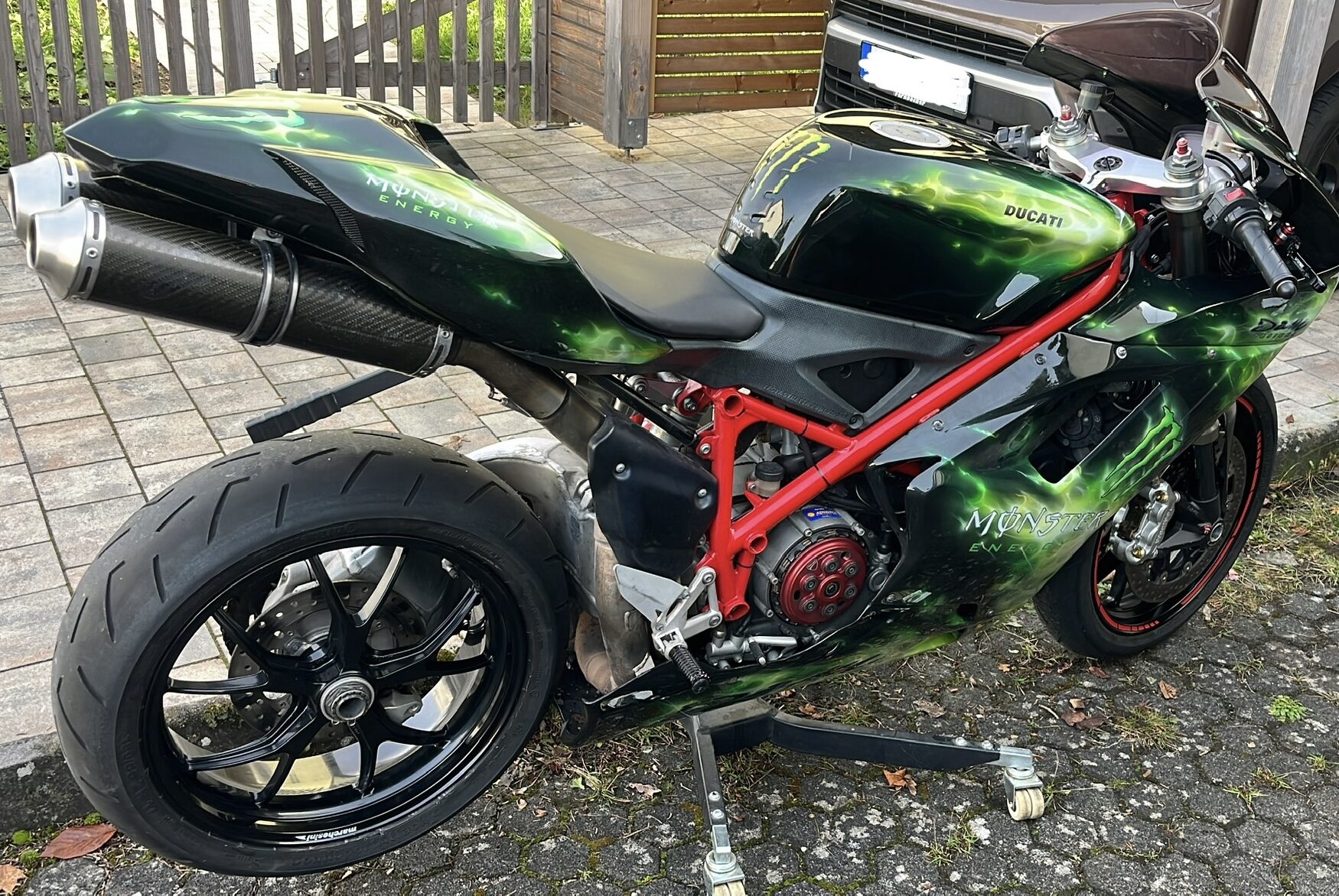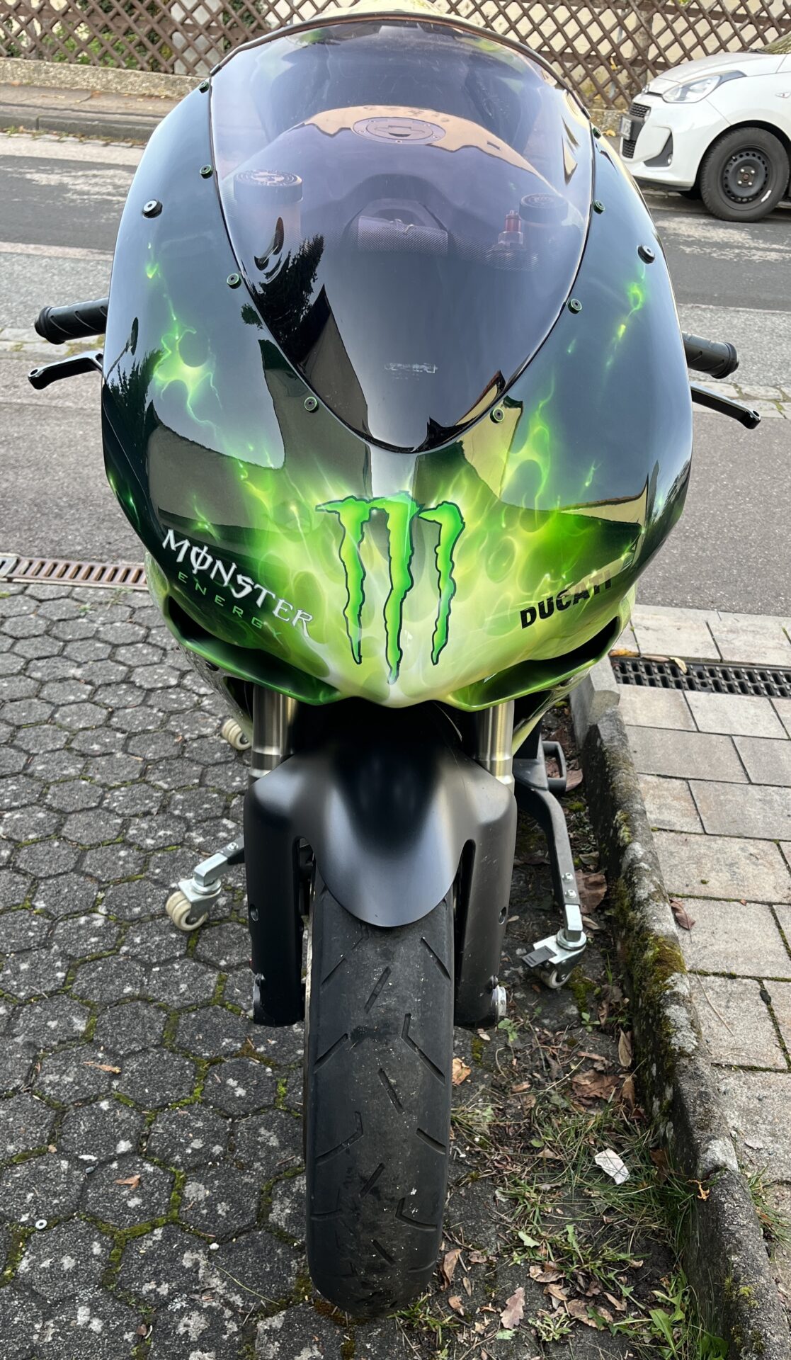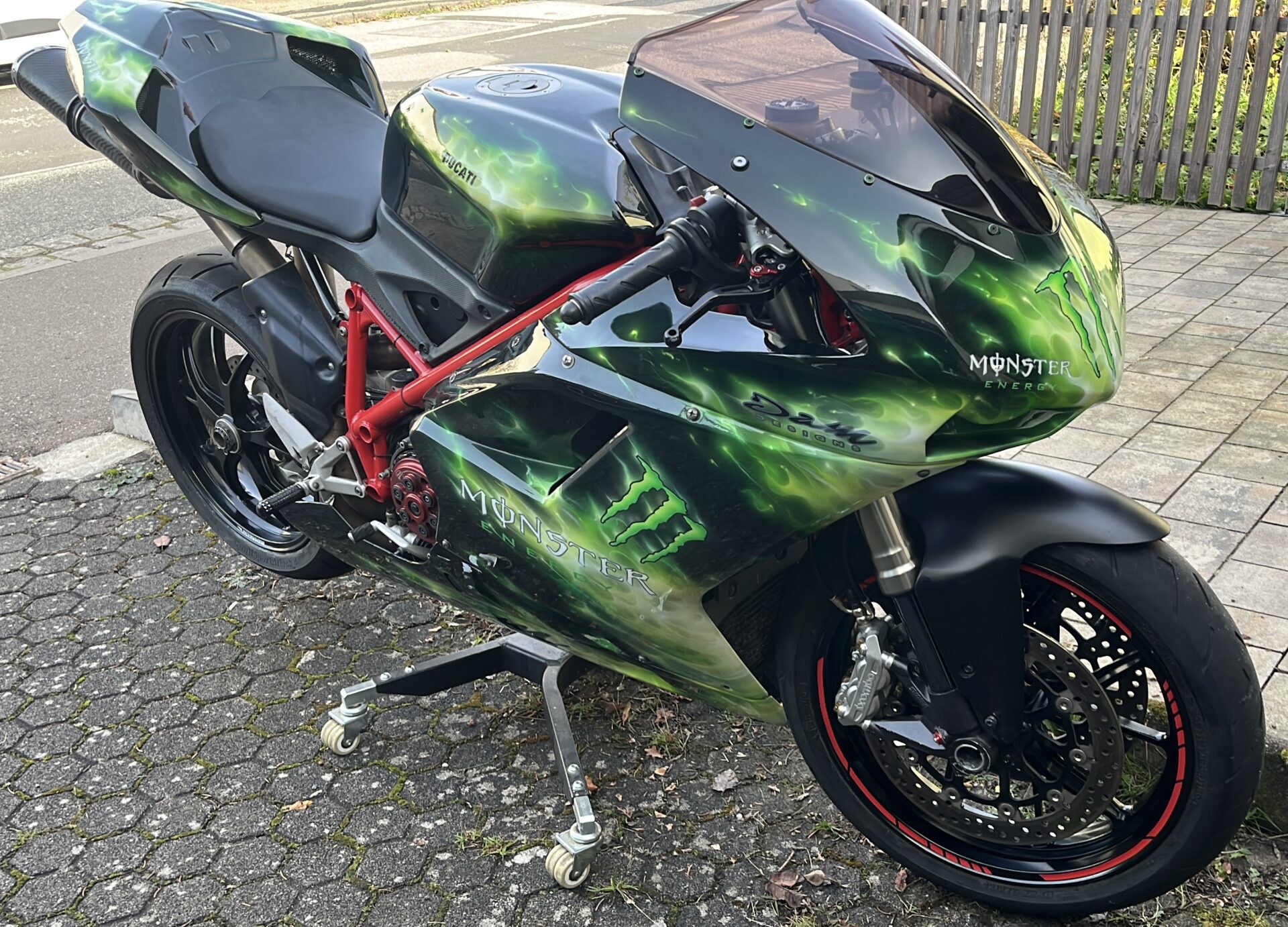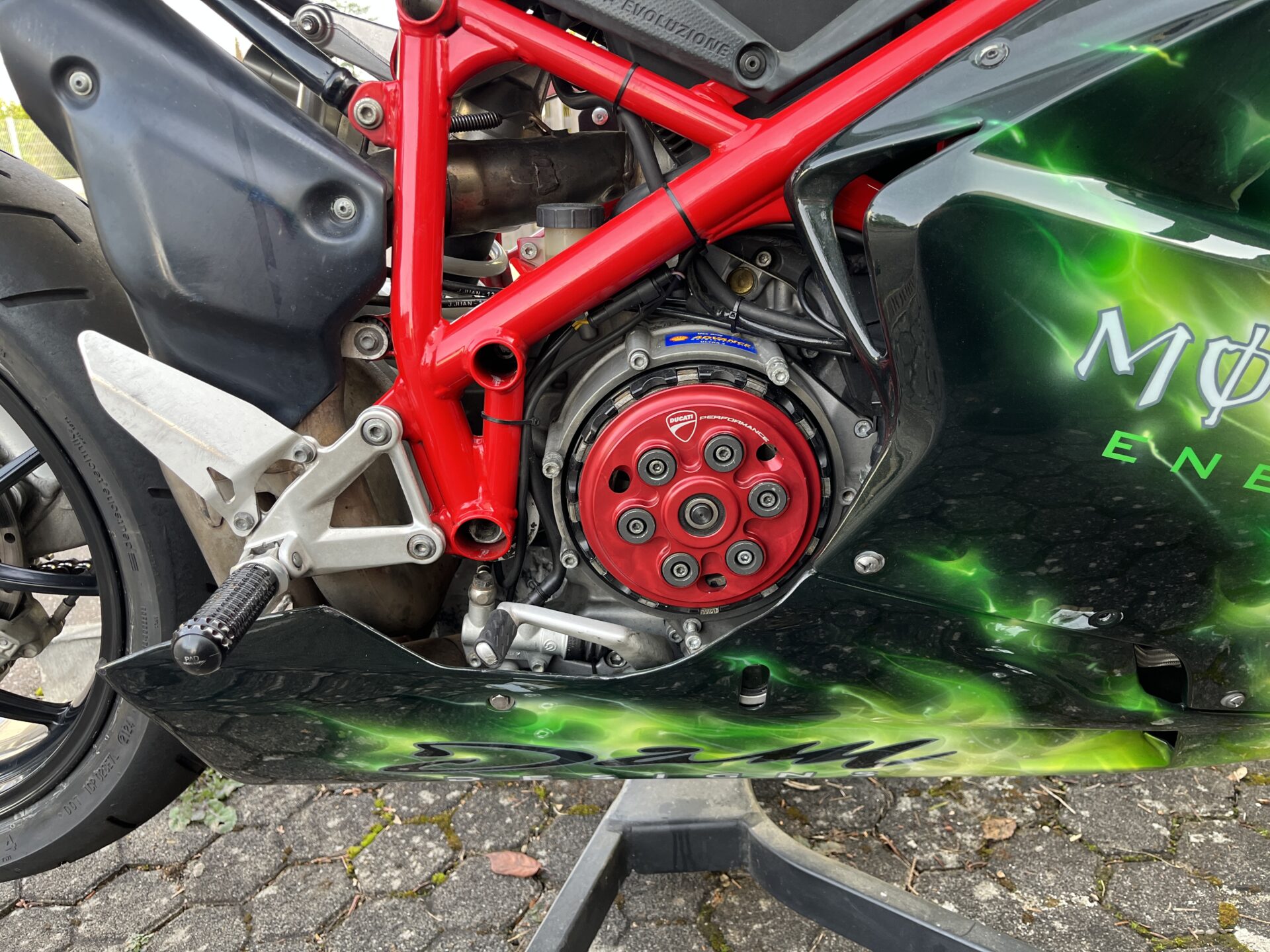 Das Bike ist unfallfrei, vor ca 8.000km wurden Motorlager erneuert und die Kurbelwelle feingewuchtet. In dem Zuge wurde auch der Umbau auf Trockenkupplung incl. Ducati Performance Antihoppingkupplung gemacht.