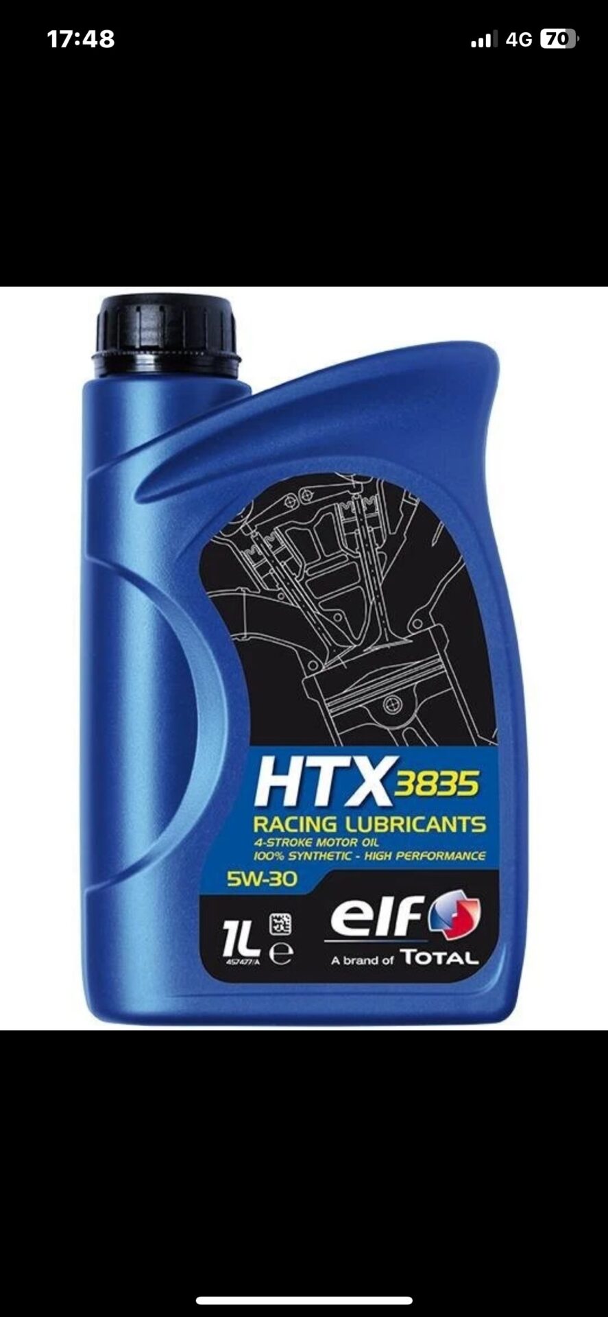 Biete hier wegen Hobbyaufgabe folgende Neuware an: 8x1 Liter ELF HTX 3835 für 5W-30 Vollsynthetisches Motoröl / Motorradöl Motorbike etc. ELF HTX 3835 wurde speziell entwickelt, um die maximale Leistung bei belasteten Motoren, Sprintrennen und Kurzstreckenrennen zu erzielen, besonders empfohlen für Motorräder GP, SBK, SSP, EWC, Superstock ...
