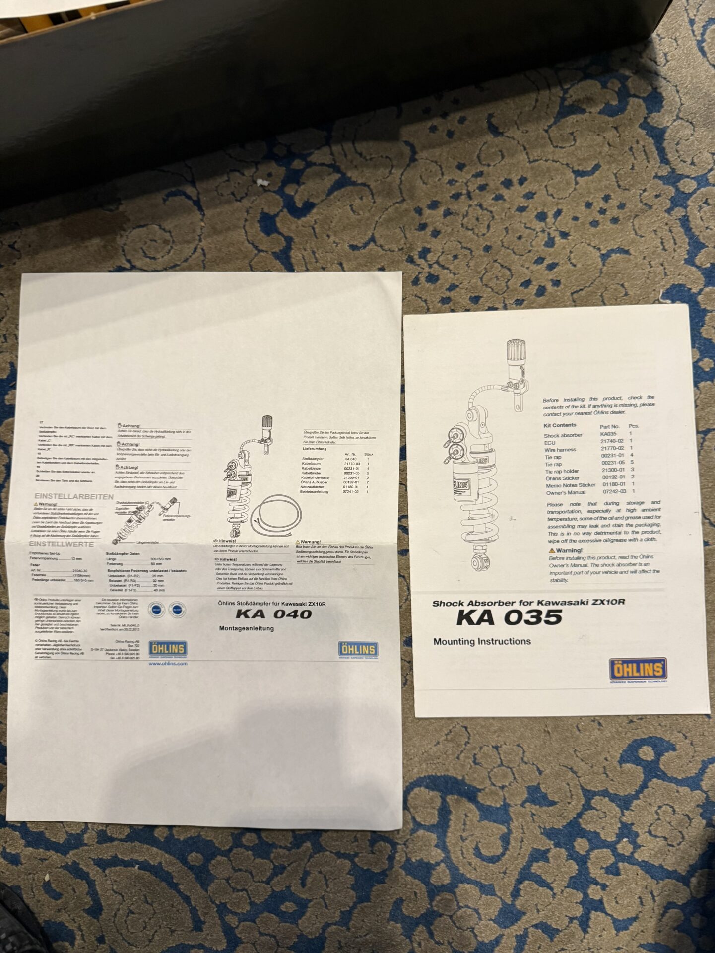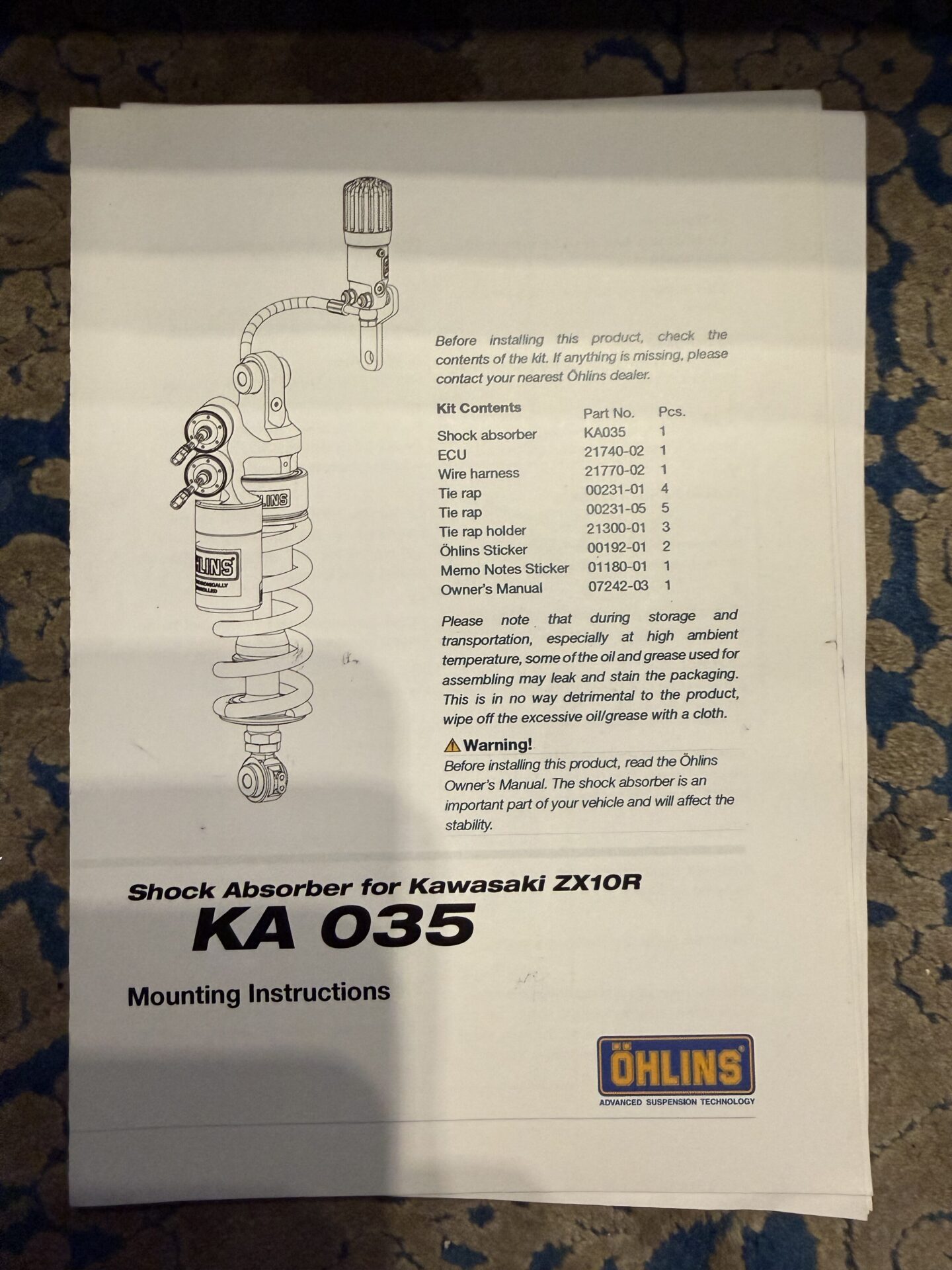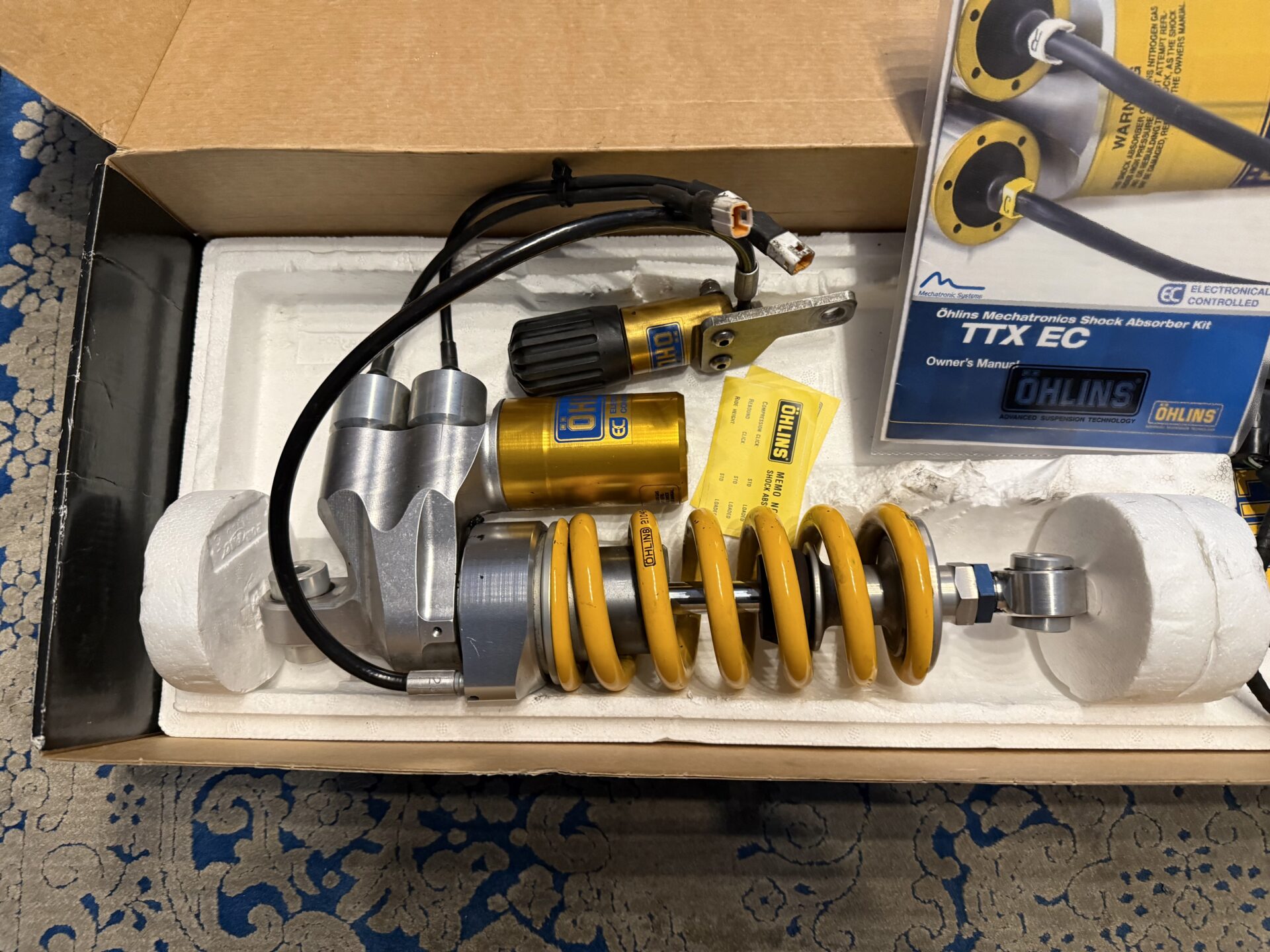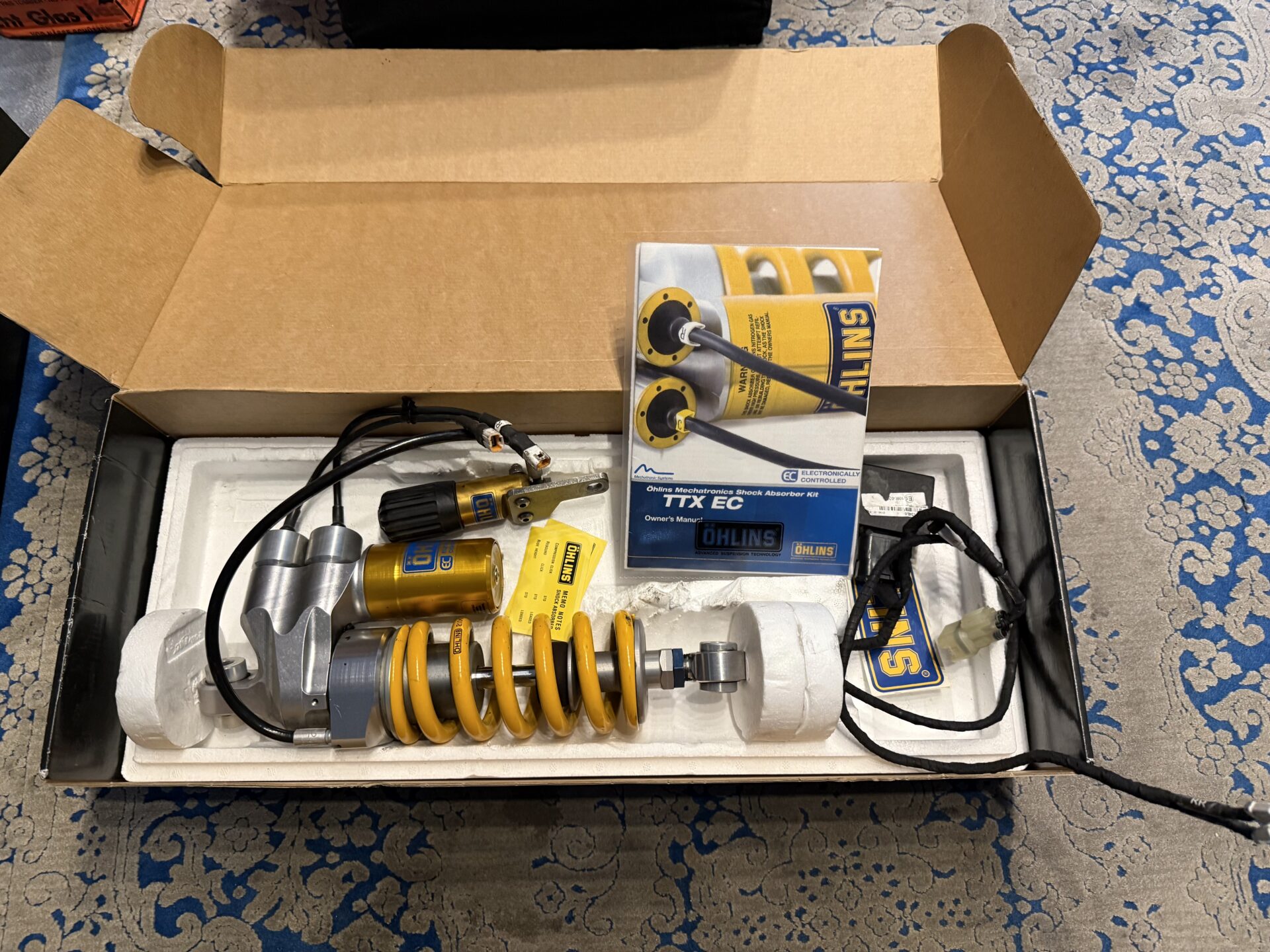 Öhlins elektronischer Stoßdämpfer hinten für Kawasaki ZX-10R Bj.2011-2013 mit Originalverpackung.