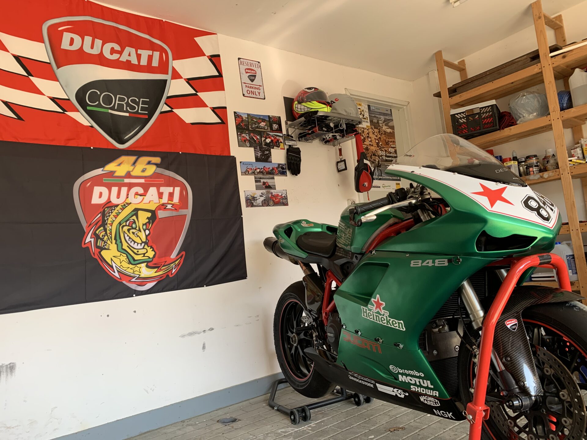 Die Duc hat inzwischen ein paar Kampfspuren (keine Highsider!), ist aber technisch vollkommen i.O. und die modellspezifischen Baustellen (Lima-Regler, Massekabel und Benzinpumpe) wurden geprüft und sind in Ordnung.