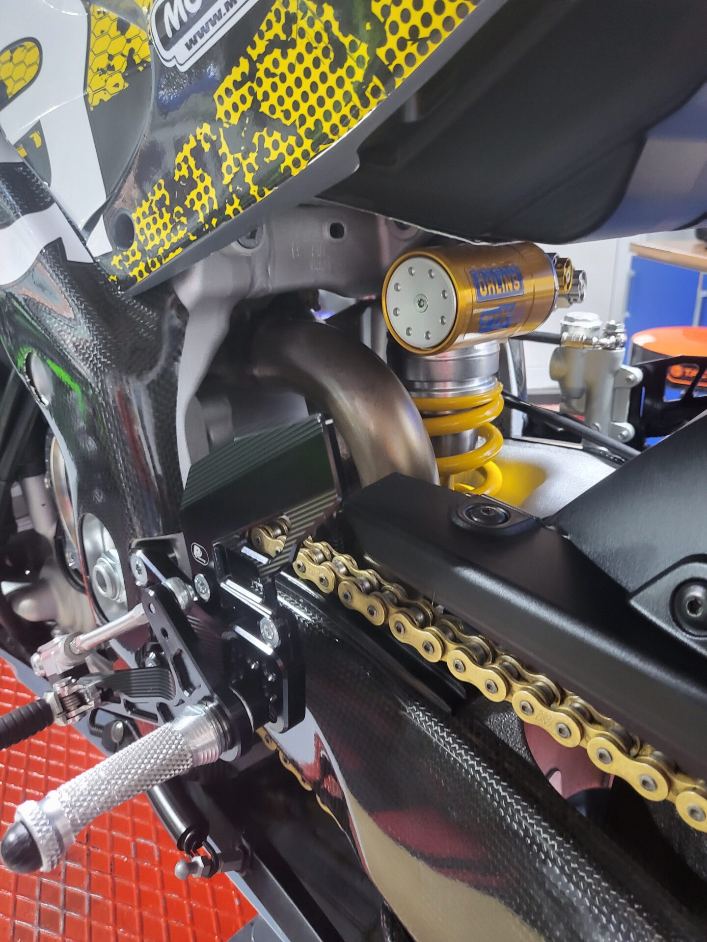 - ÖHLINS-Stoßdämpfer hinten (eingestellt auf 90 kg)
