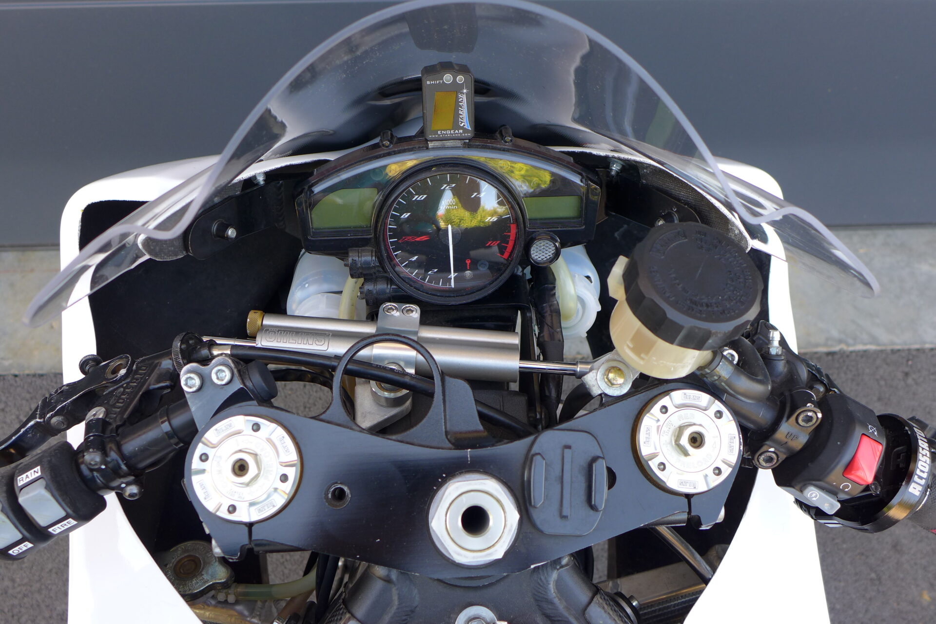 Das Bike wurde laut seiner Aussage gemäß damaligem IDM Regulativ aufgebaut und es wurde nicht gespart (siehe Ausstattung). Der Motor wurde feinstens überarbeitet, der Kopf plangeschliffen und die Kanäle poliert, alles auf höchstem fachlichem Niveau, was mir von Yamaha Rennsportfachleuten bestätigt wurde. Und man merkt es natürlich auch deutlich, der Motor ist bärenstark und schiebt an wie die Sxx. Es gab keine 6er, die jemals mitgekommen wäre und auch vor 675er, 848er etc. etc. braucht man sich nicht verstecken. Nachdem letztes Jahr die Lichtmaschine kaputt geworden ist, wurde auch gleich eine kleine Motorrevision gemacht, dabei wurde die Kurbelwelle und alle Pleuellager getauscht, der untere Teil des Motors ist also de facto neu (Belege vorhanden). Auch das Fahrwerk wurde 2024 letztmals von PEMA serviciert und neu eingestellt (Belege vorhanden). Das Motoröl wurde nach jedem 2. Wochenende (4 Renntage) getauscht.