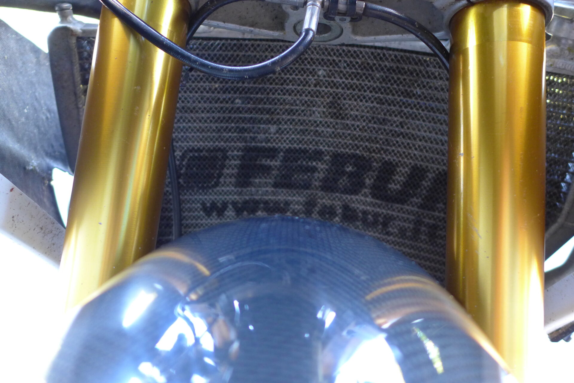 Ich hatte mit diesem Bike tatsächlich nur einen einzigen Sturz, und zwar einen harmlosen "Köpfler" ins Kiesbett schon 2019, als ich sie noch nicht gewohnt war, man sieht das an der rechten Verkleidungsseite und der gebrochenen Endkappe vom Endschalldämpfer.