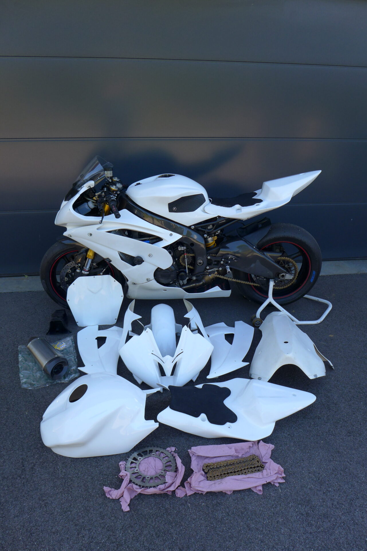 Da immer noch die erste Verkleidung drauf ist und diese durch die lange Verwendungszeit natürlich in Mitleidenschaft gezogen wurde (Bohrungen), gebe ich eine unbenütze Sebimoto Rennverkleidung gratis dazu. Ebenso gebe ich einen neuen LeoVince Endschalldämpfer gratis dazu! Alleine diese Teile haben einen Wert von über 1.000,- Euro, und damit steht das Bike auch optisch tadellos da!
