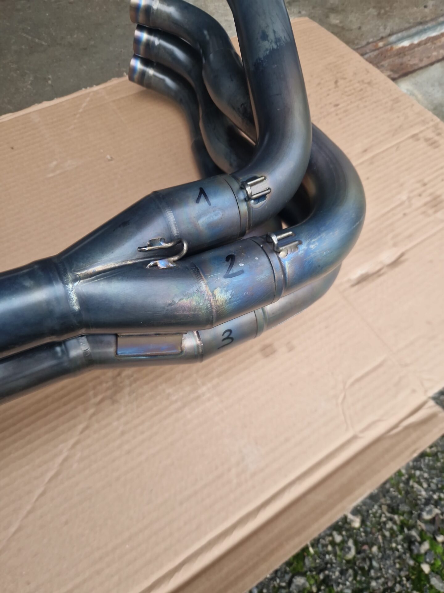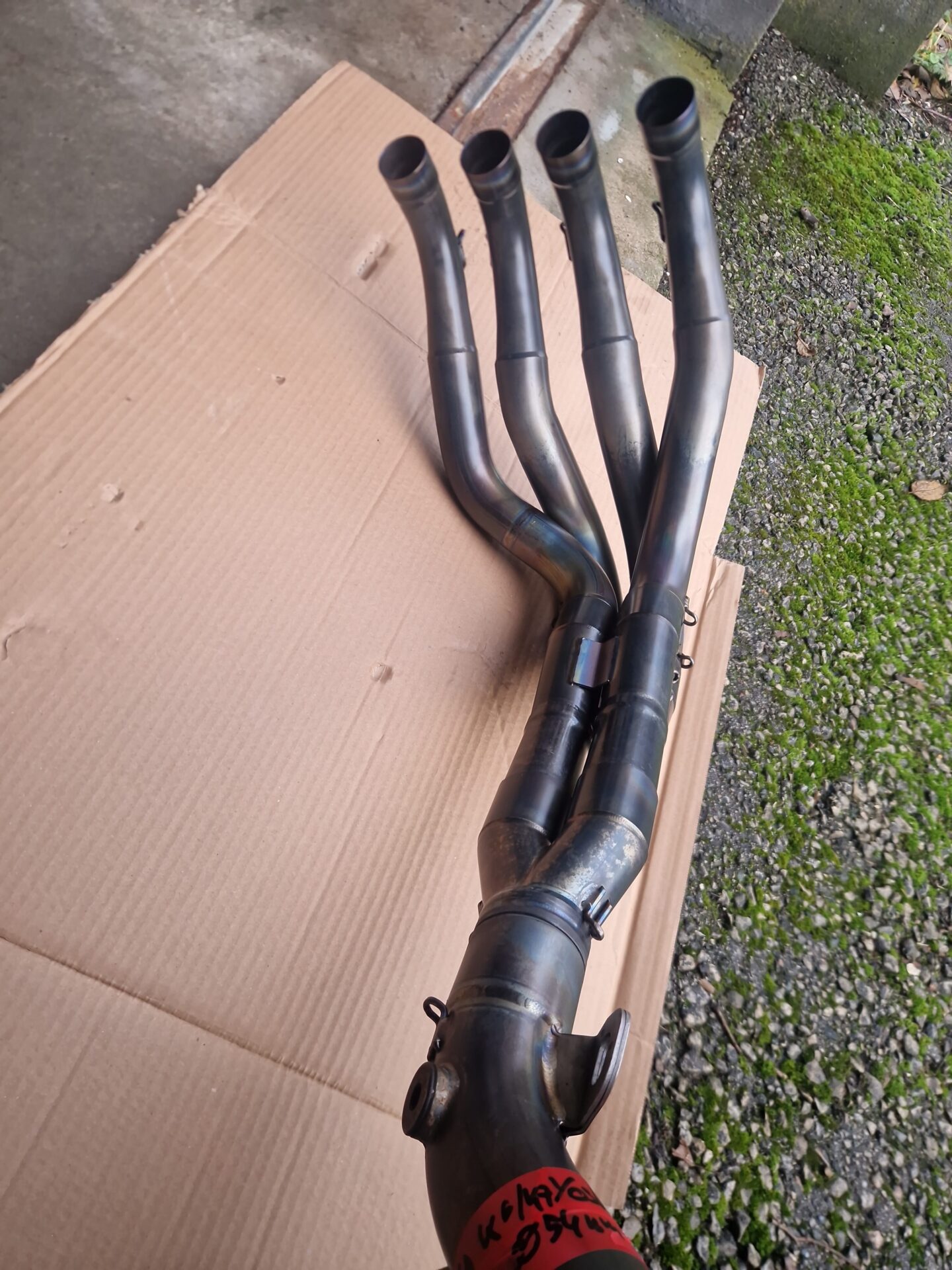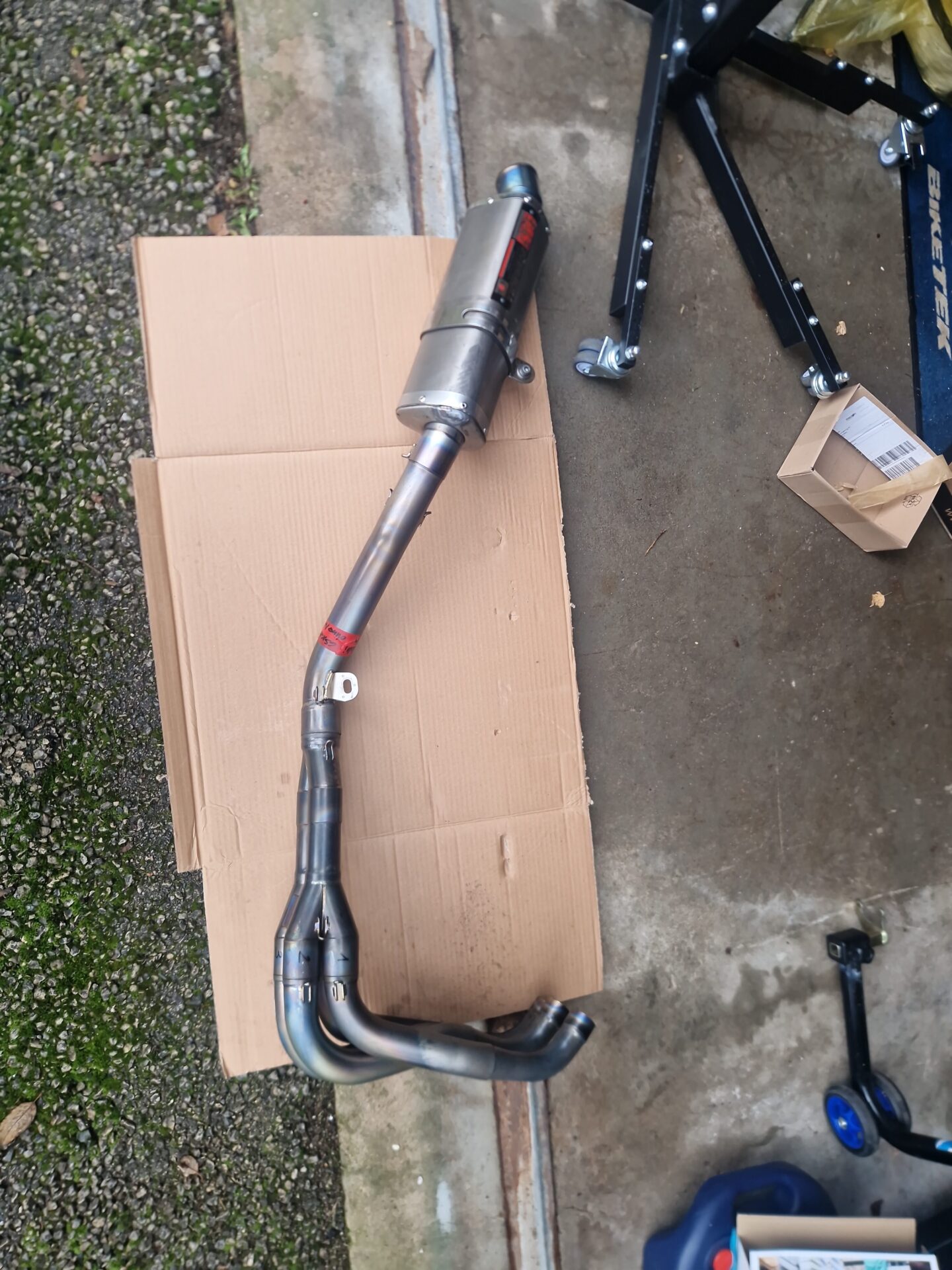 Die Anlage ist in einem guten Zustand. Wie man sieht, wurde der Endtopf mal nach einem Sturz repariert. Völlig dicht und funktioniert einwandfrei.