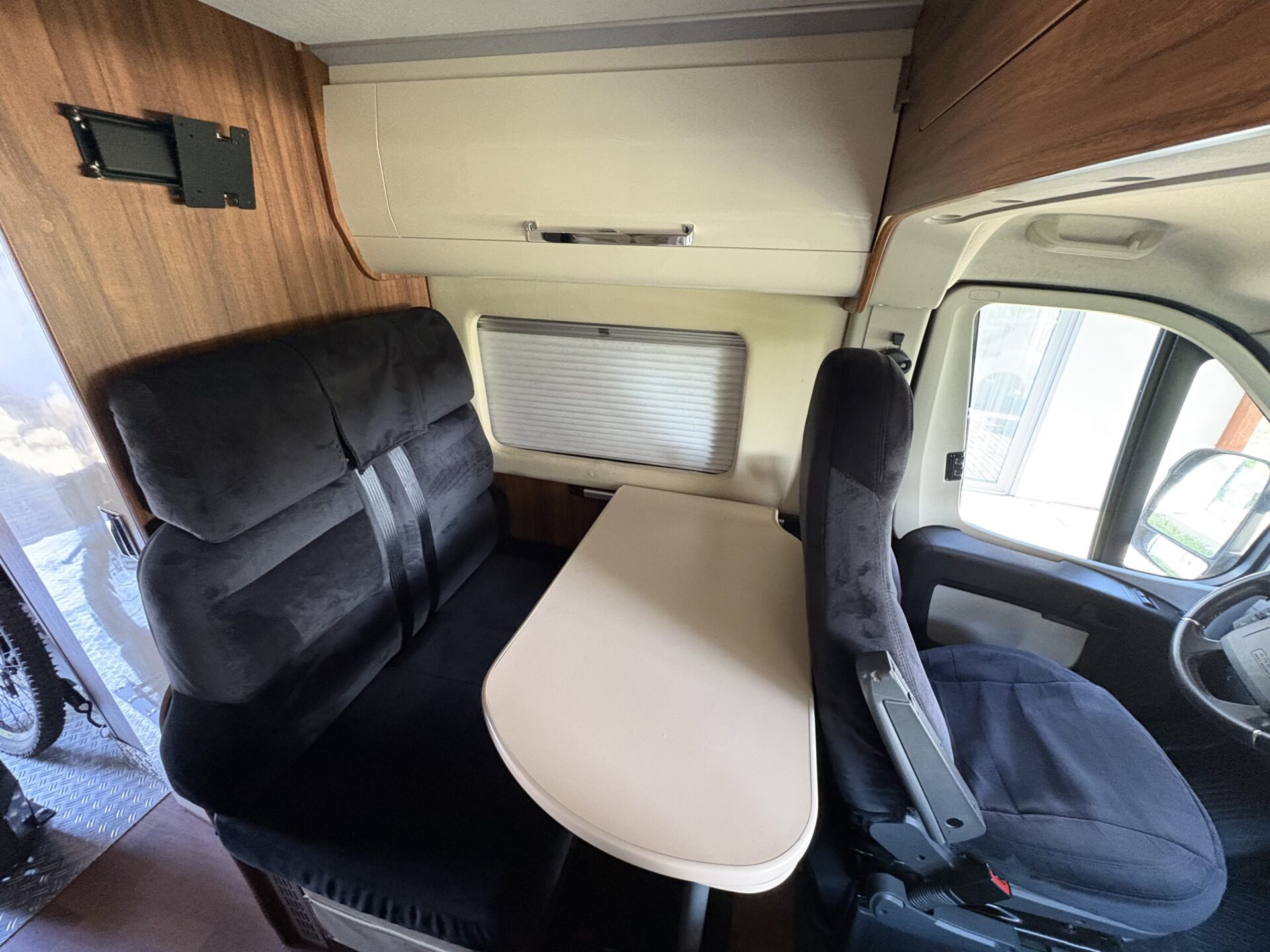 Bei Bedarf kann Sitzgruppe und Tisch vorne mit etwas Zusatzaufwand zu einem weiteren Schlafplatz umgebaut werden.
