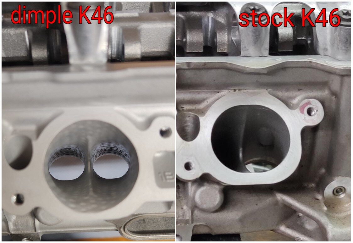Durch die Änderung der Form wird der Ladungswechsel bei hoher Gasgeschwindigkeit verbessert und gleichzeitig ein breit nutzbares Drehmomentband gewährleistet. Die Dimple Oberfläche verschiebt die Grenzschichtablösung, welche bei hohen Drehzahlen eine Verschlechterung der Zylinderfüllung verursacht, das Drehmoment wird länger hoch gehalten = Steigerung der Leistung. Die original Geometrie wurde 3D analysiert und überarbeitet. Verifizierung durch CFD Strömungssimulation und Flow Bench Messungen.