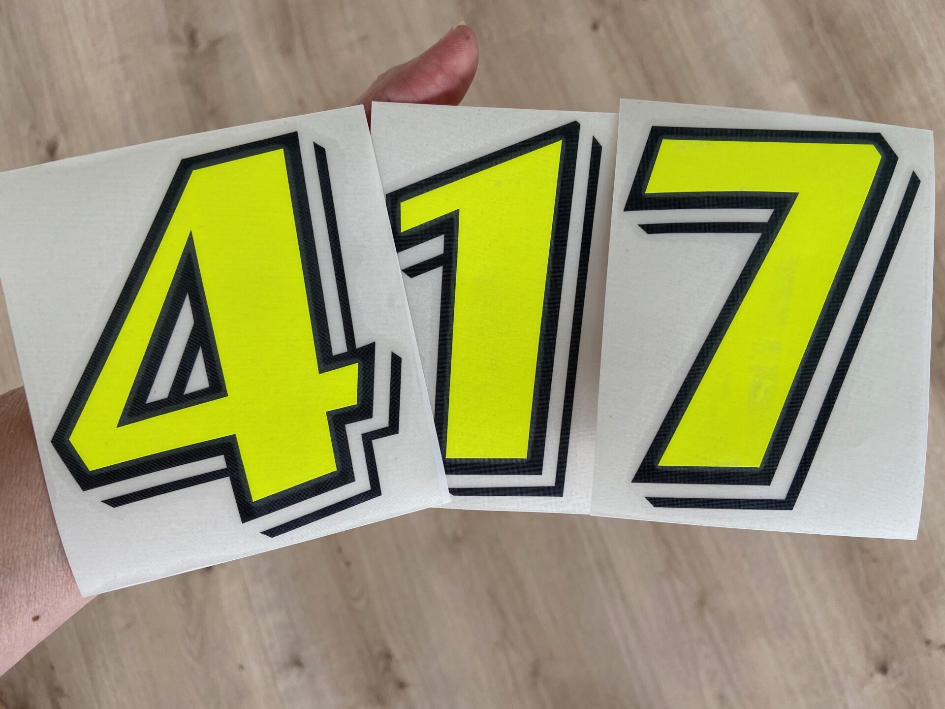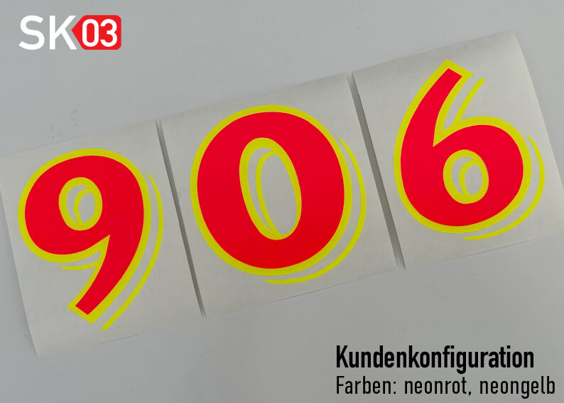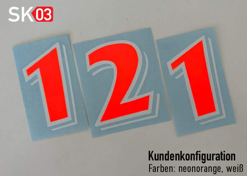 Einfach zu genieren, dank großer Vielfalt. Individuelle Motorrad Startnummern in Wunschfarbe und Wunschhöhe. Aufkleber im zweifarbigen Folienschnitt für Motocross Rennstrecke, Enduro Bike, Pitbike, MTB, Motorrad Rennen, MX Racing, Auto, Roller, BMX, Superbike Track, Supermoto Race, Quad und Scooter.