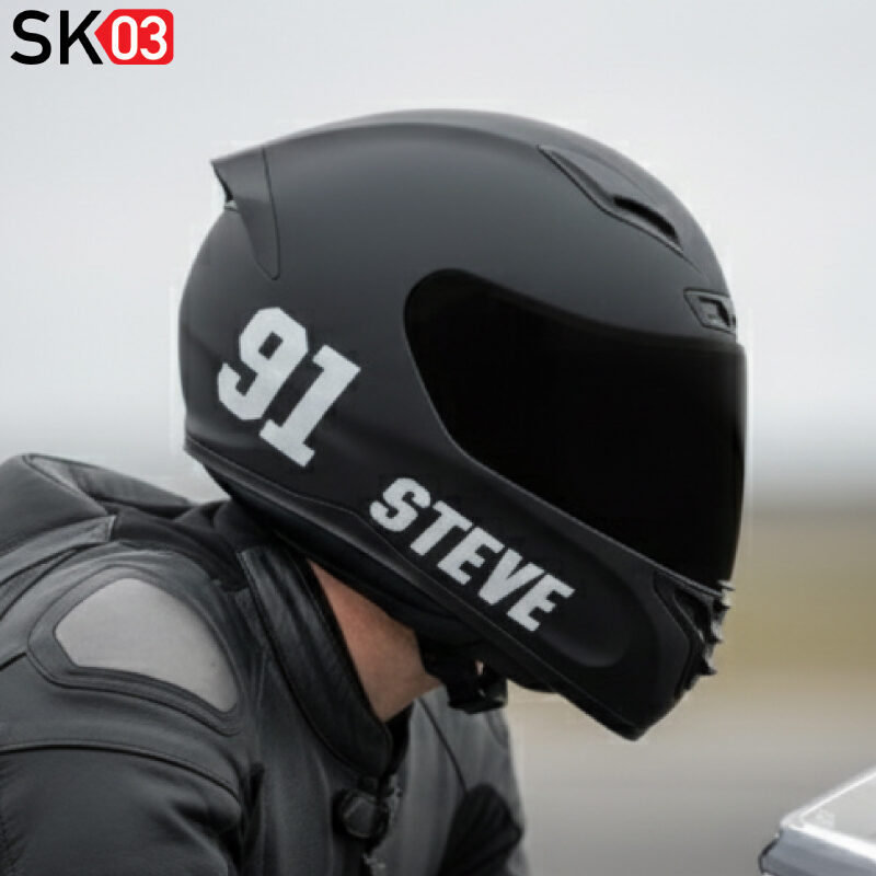 Gestalte Deinen Rennstrecken Helm mit diesem Aufkleberset, bestehend aus großen Zahlen mit Wunschtext bzw. Namen.
