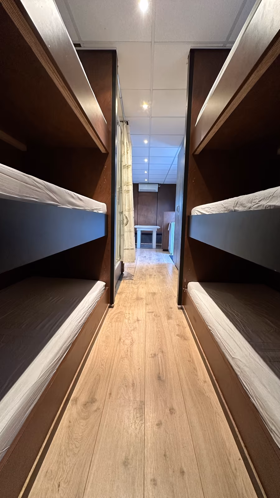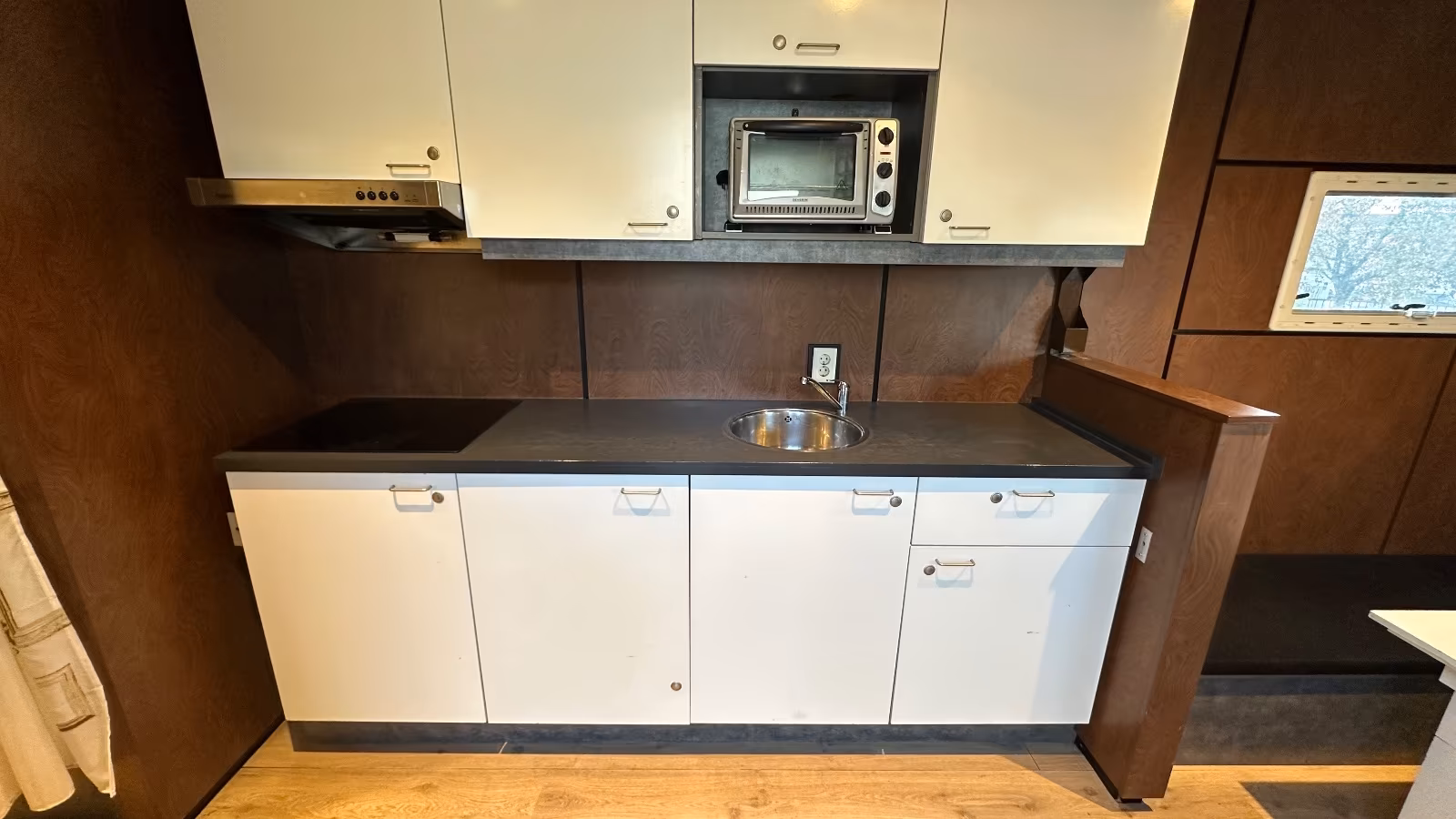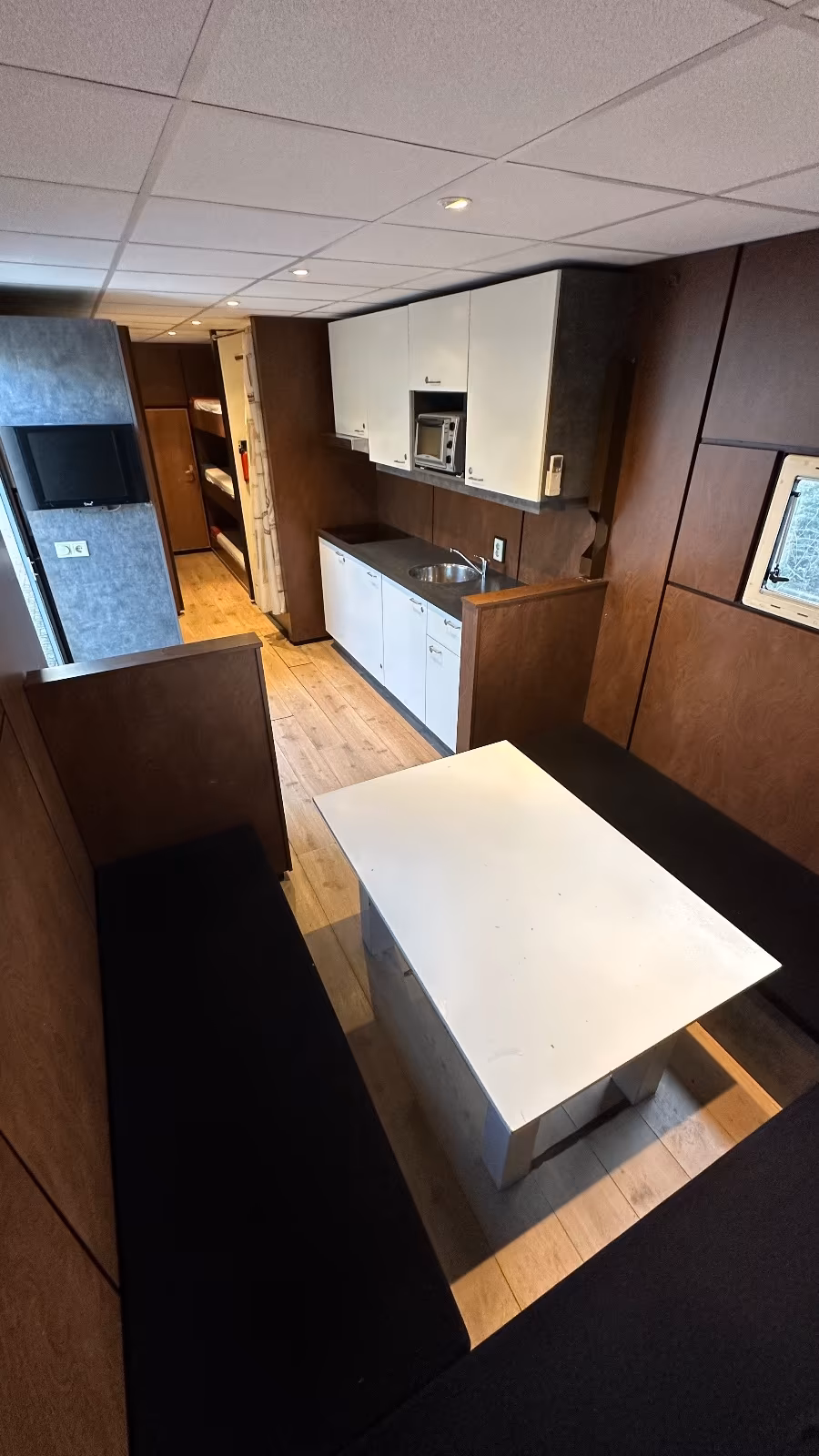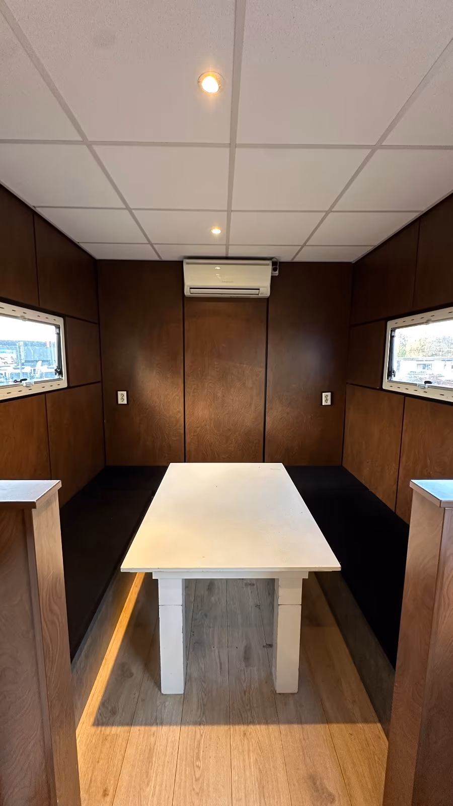 Dieser voll ausgestattete Rennanhänger verfügt über einen komfortablen Wohnbereich mit Klimaanlage, eine Küche mit viel Stauraum, eine Dusche sowie Schlafplätze für bis zu sechs Personen.
