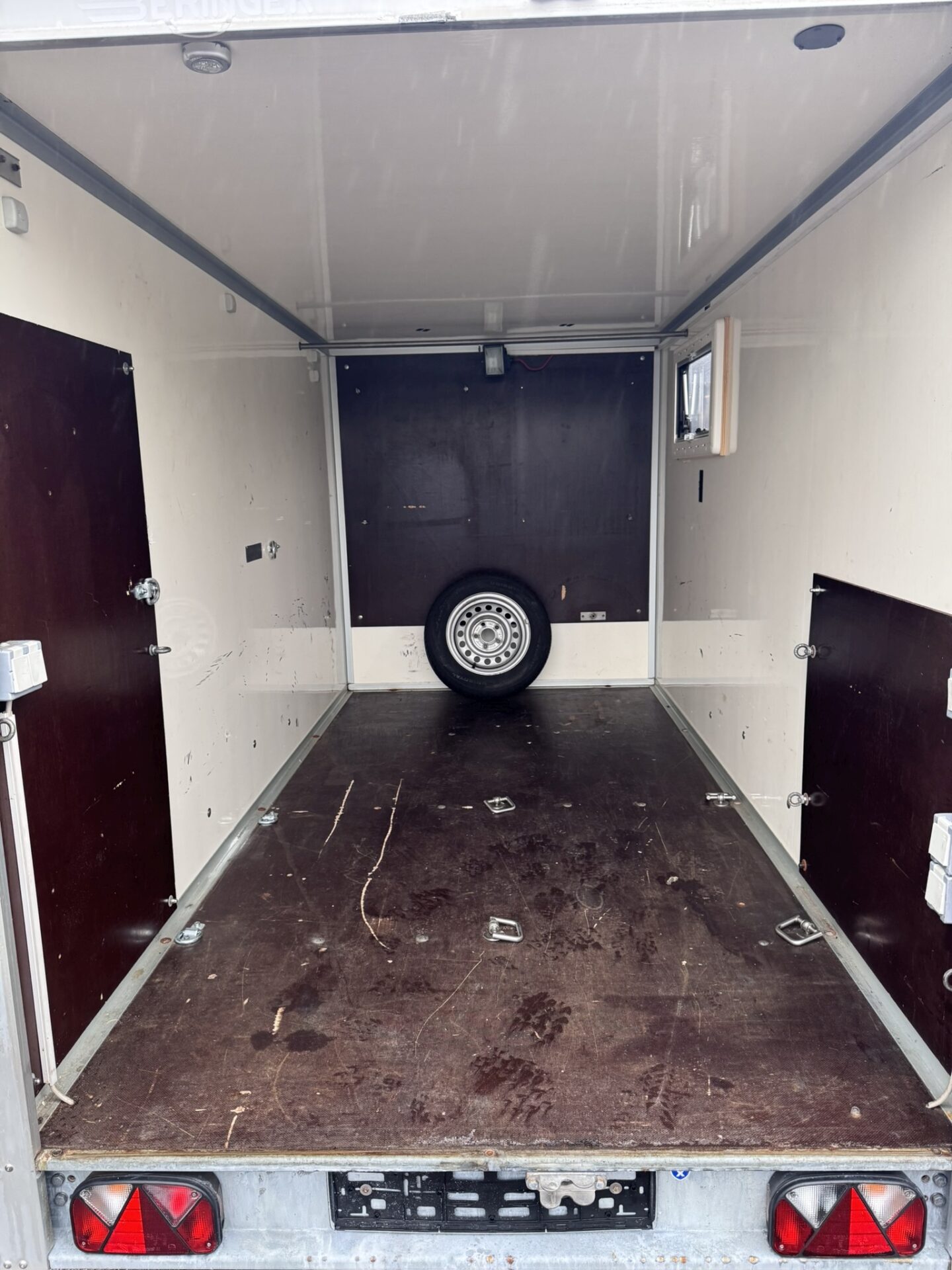 Der Anhänger hat ein zulässiges Gesamtgewicht von 2 Tonnen und ein Leergewicht von ca. 550 -600kg, also ca. 1500kg Zuladung.