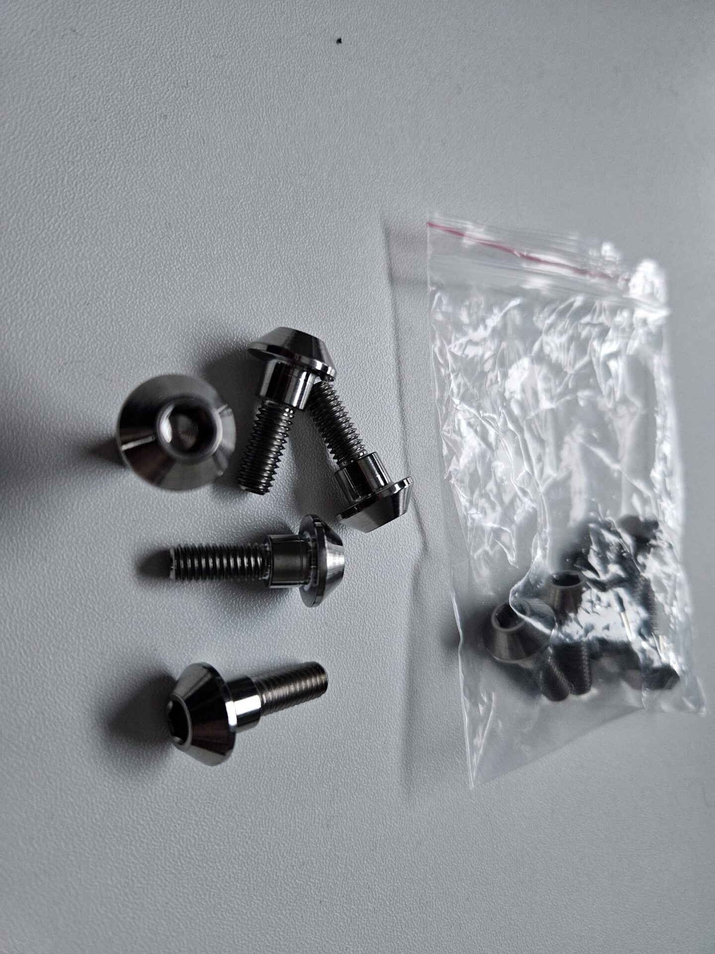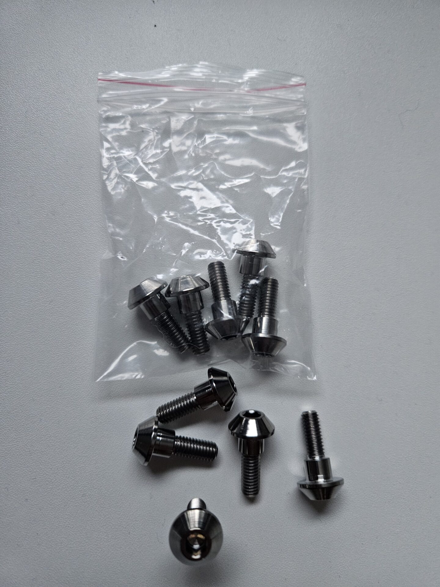 Titanschrauben hochglanzpoliert. Gewinde gerollt.