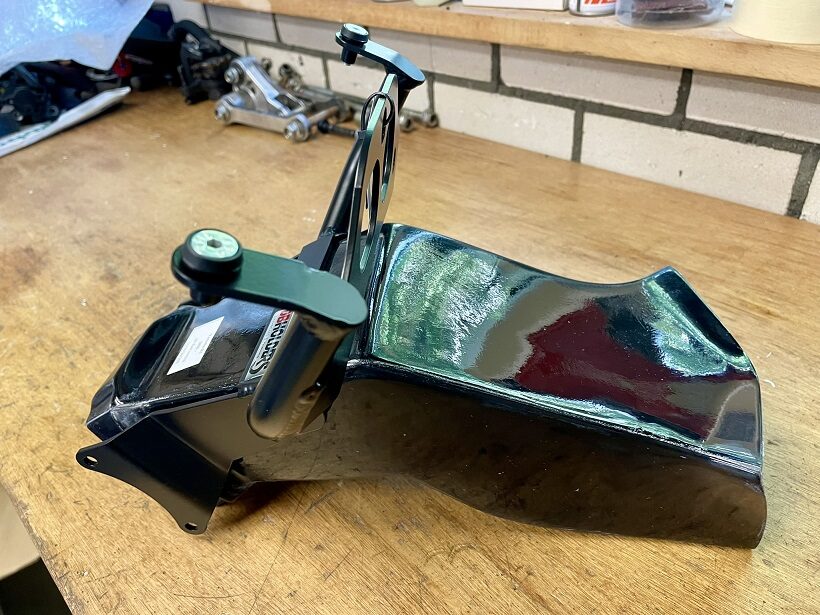 Dieser Rahmen spiegelt perfekt die Abmessungen des Originals wider. Auf diesem Hilfsrahmen kann die Originalinstrumentierung montiert werden, da es sich jedoch um ein Rennprodukt für den Rennstreckeneinsatz handelt, ist es nicht mit Befestigungen für Scheinwerfer, Lichter, Pfeile und Spiegel ausgestattet.