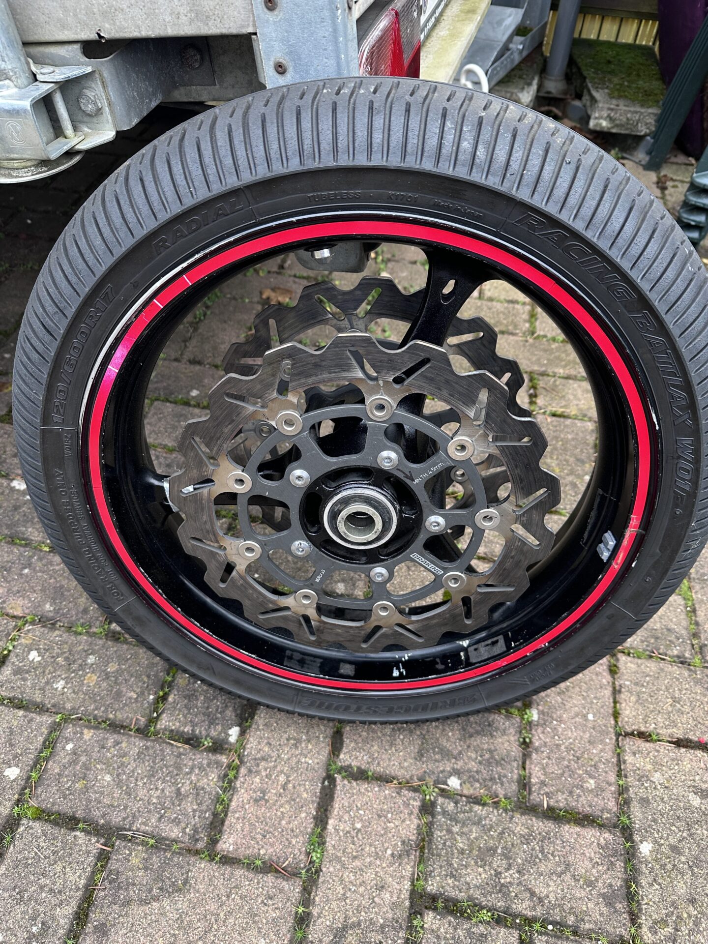 Verkaufe meinen 2. Felgensatz für die Gsxr incl Bremsscheiben , Winkelventilen und Distanz Hülsen.
