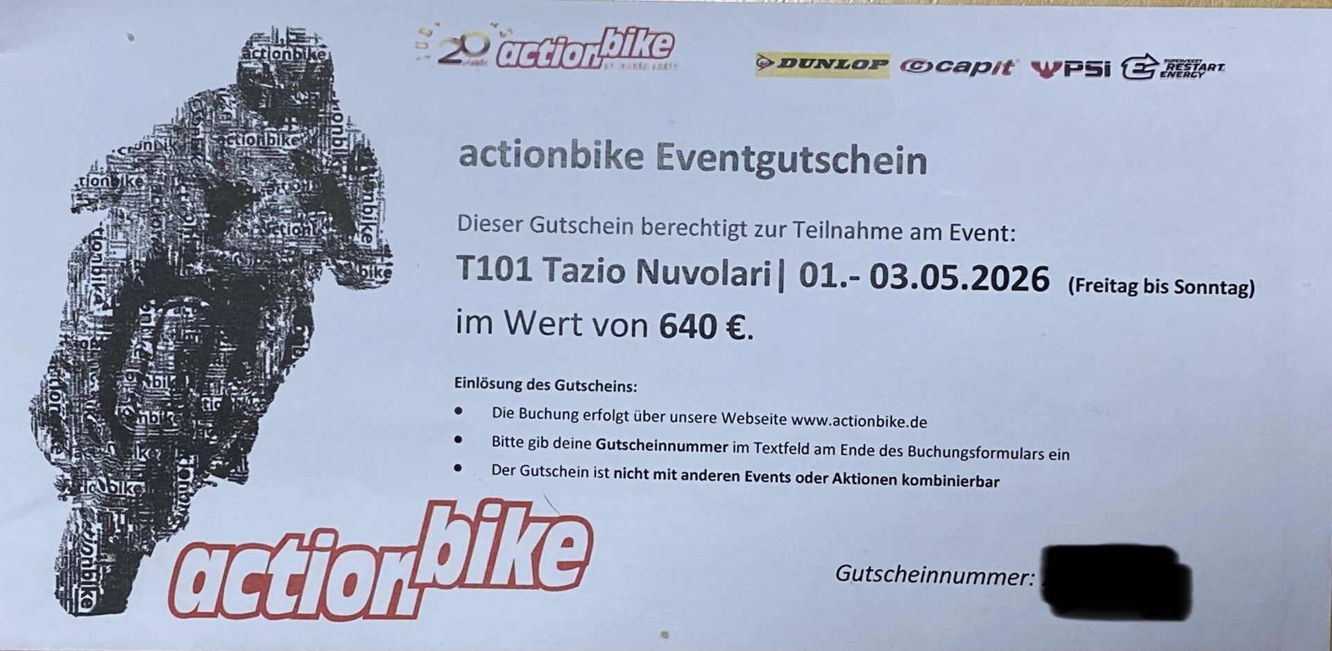 Gutschein im Wert von € 640 für Renntraining in Tazio mit actionbike