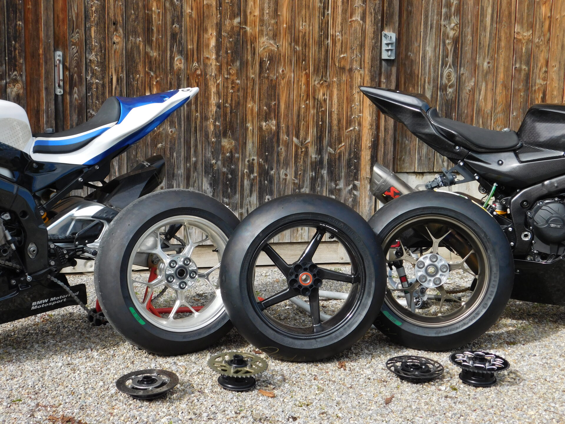 Das Hinterrad kommt Einbaufertig mit Bremsscheibe Ritzel und Titanschrauben.