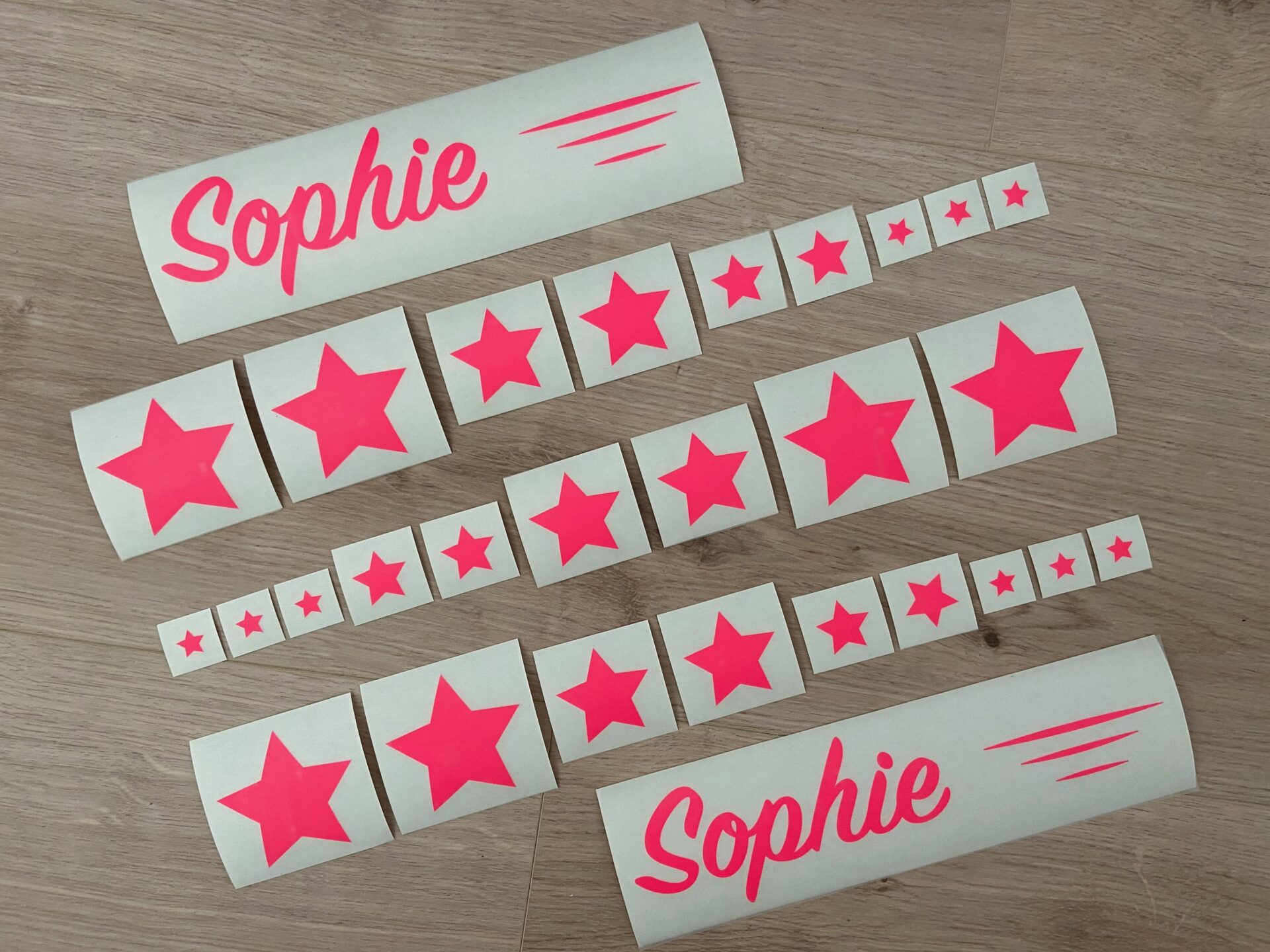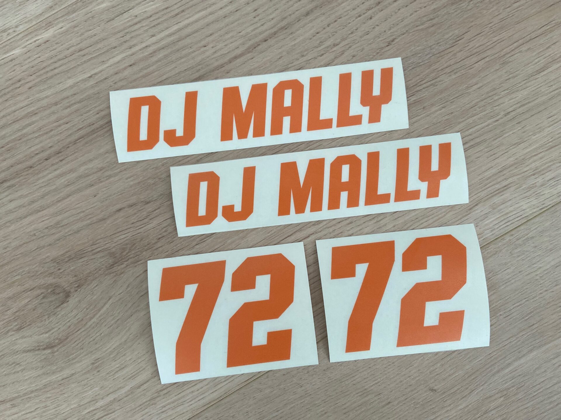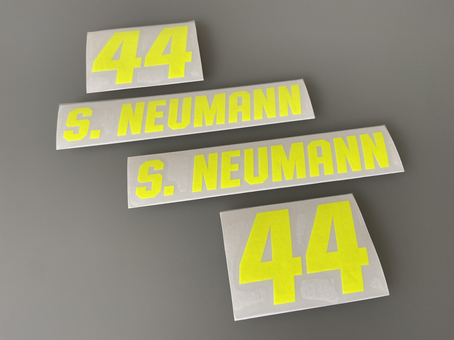 Aufkleber Set – 2 x Helmaufkleber mit Startnummer und 2x Helmaufkleber mit Name in 25 Farben inkl. Neon Töne