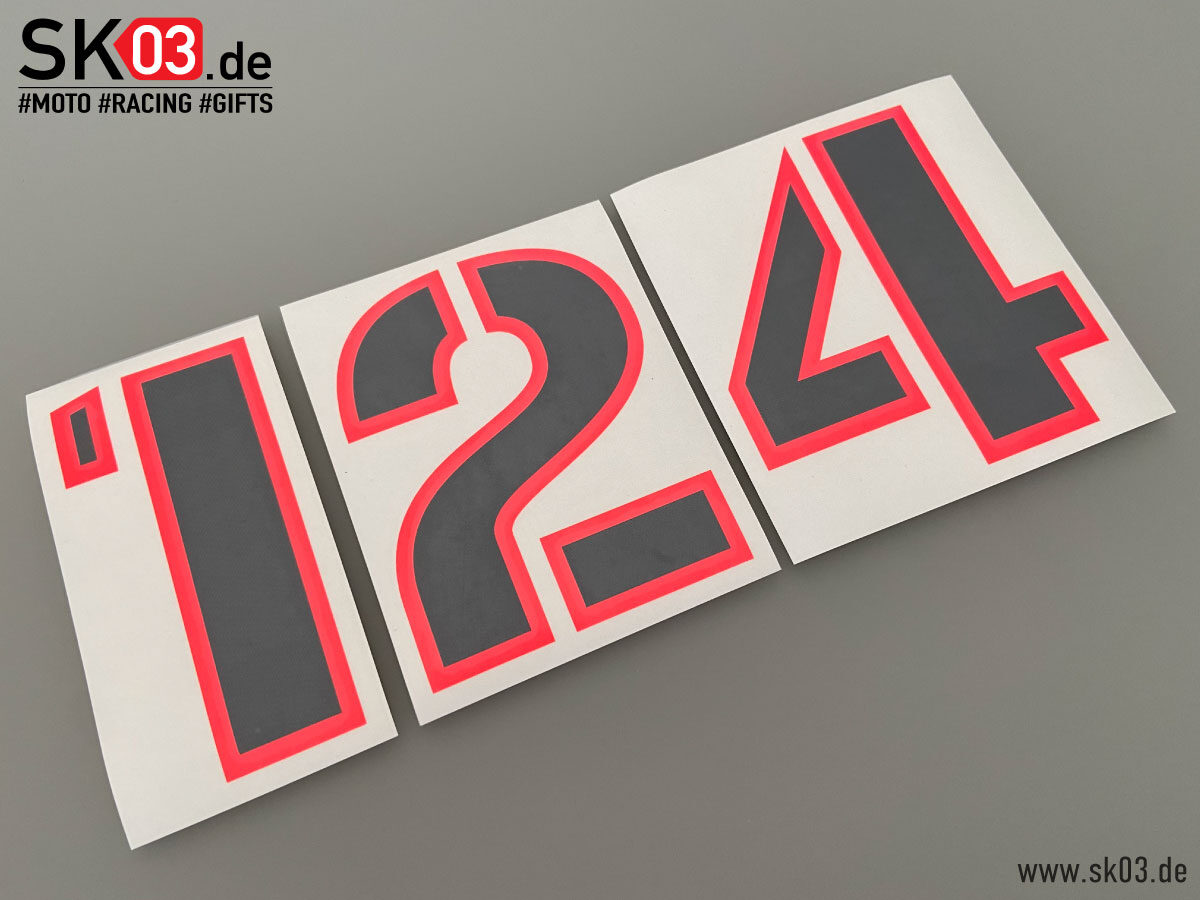 Einfach zu genieren, dank großer Vielfalt. Individuelle Motorrad Startnummern in Wunschfarbe und Wunschhöhe. Aufkleber im zweifarbigen Folienschnitt für Motocross Rennstrecke, Enduro Bike, Pitbike, MTB, Motorrad Rennen, MX Racing, Auto, Roller, BMX, Superbike Track, Supermoto Race, Quad und Scooter.