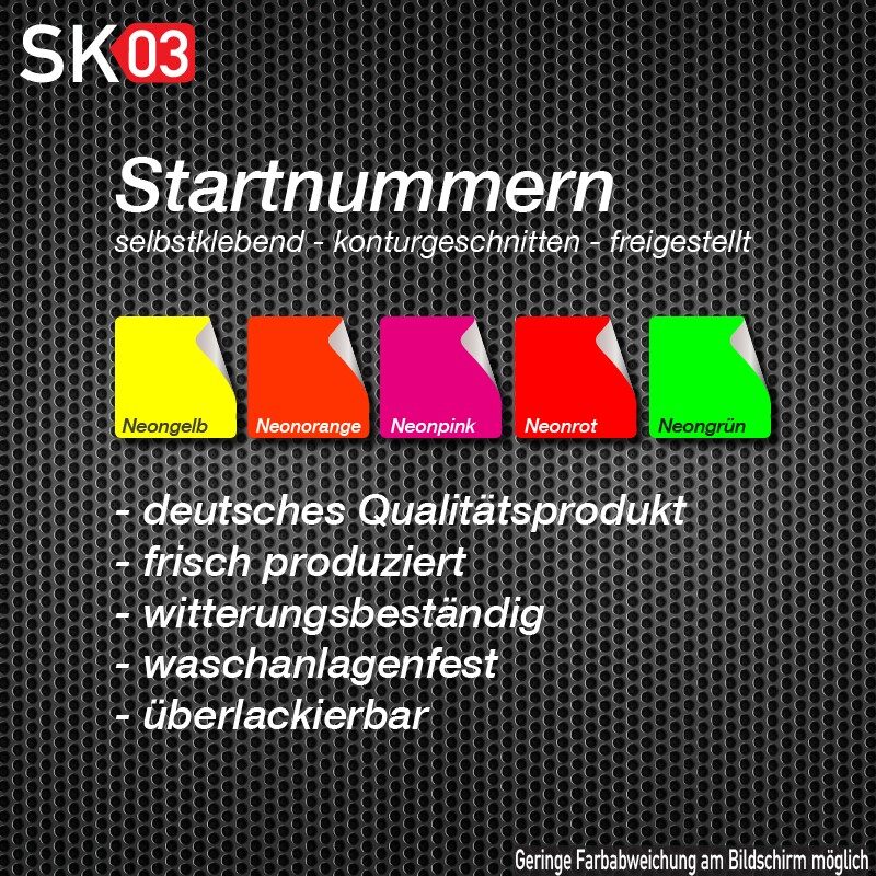 ✅ Deine Startnummer ist zweifarbig, d. h. die Anfertigung erfolgt mit zwei Folienfarben