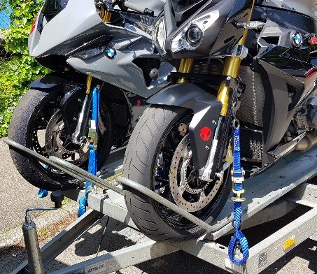 Ein Set CARBON Brake cooler mit einem Set BFS Bike-Fix-System Motorrad Transport System.