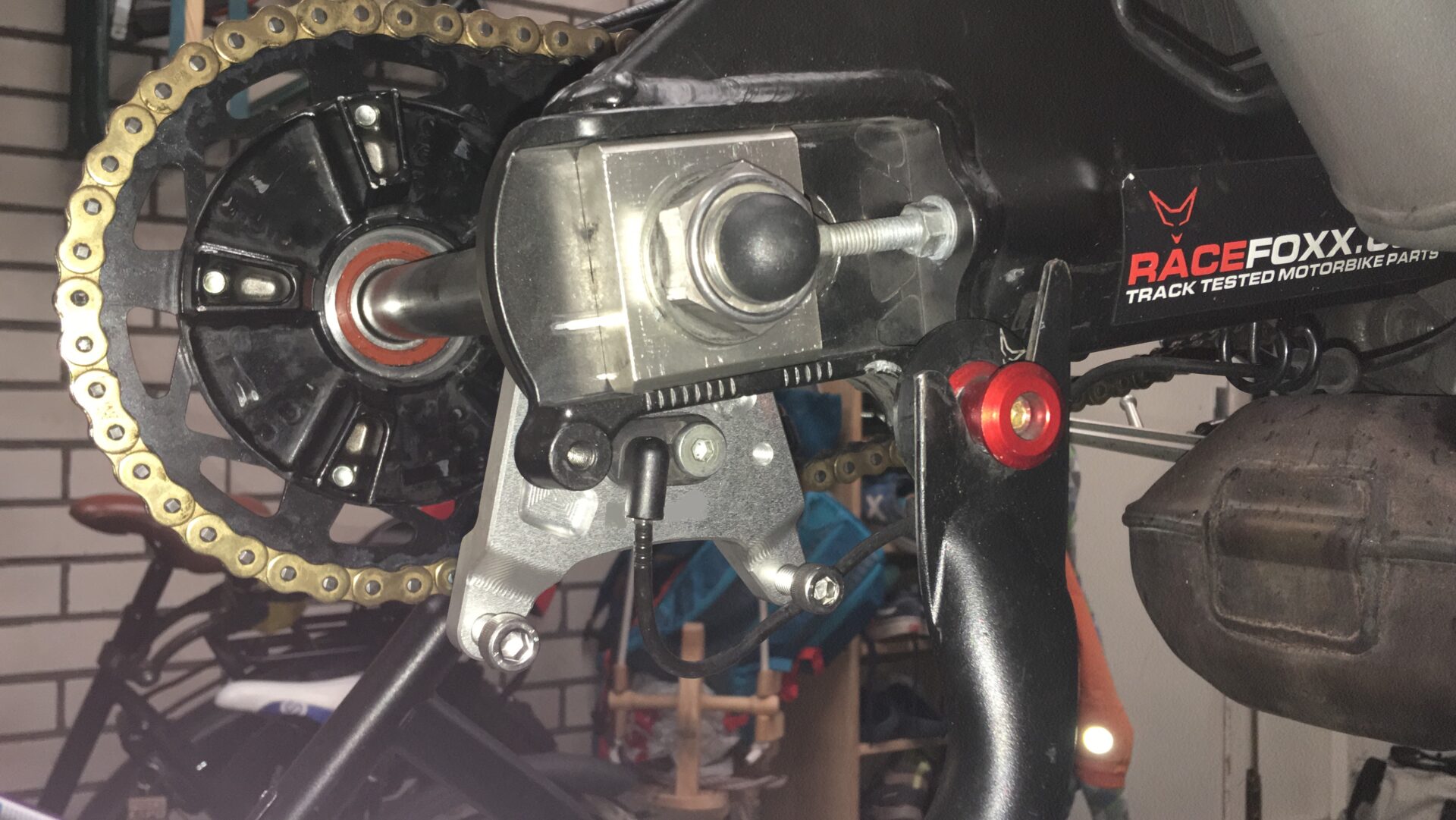 Der große Vorteil der Befestigung des Bremssattels am Kettenspanner in Kombination mit Die unterlegte Halterung ist, dass das Wechseln des Rades viel einfacher ist. Die Bremsscheibe ruht im Bremssattel und Sie müssen das Rad nicht hochhalten, um die Achse hineinzuschieben. Auf Wunsch können wir den Unterbau mit Bremssattel für Sie in unserer Werkstatt einbauen. Bitte kontaktieren Sie uns dazu.