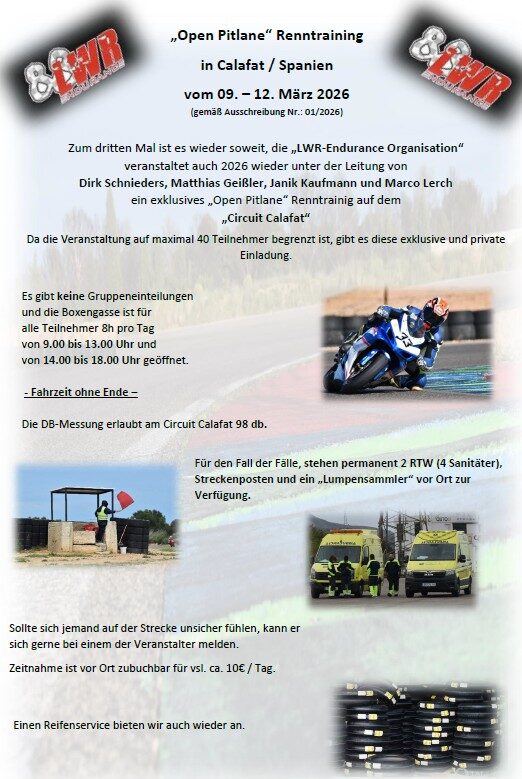 Biete ein Renntraining Calafat 9. - 12.03. 2026 an. Komplette freies Fahren - 4 Tage lang.