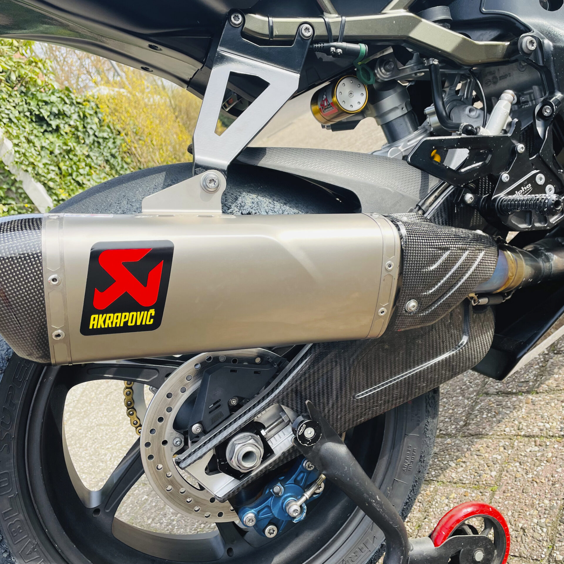- Volledig Akrapovic uitlaatsysteem (lange demper wordt ook bijgeleverd)