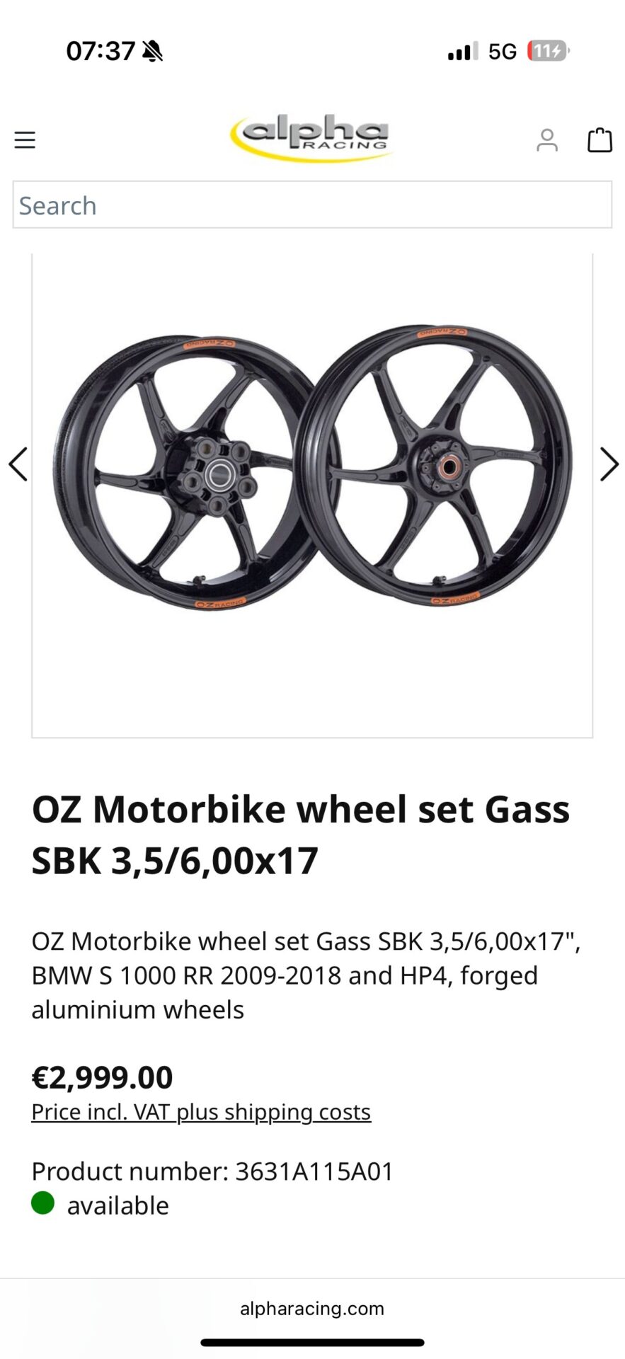 BMW S1000RR OZ Gass SBK Alpha Racing Felgen K46 2009-2018