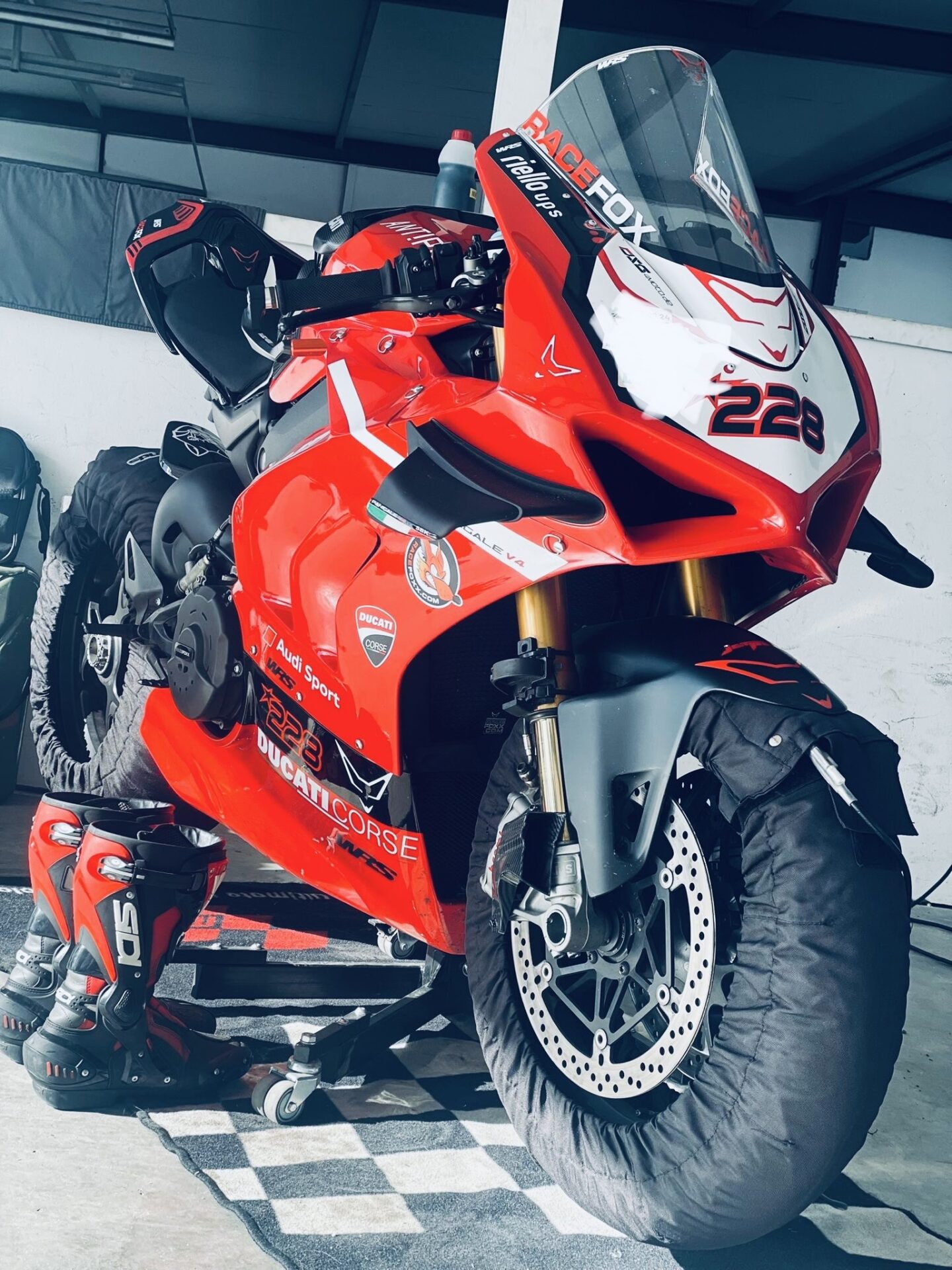 Die Rennverkleidung ist von der Firma MotoXP und ist die verstärkte Version an den Verschraubungspunkten.