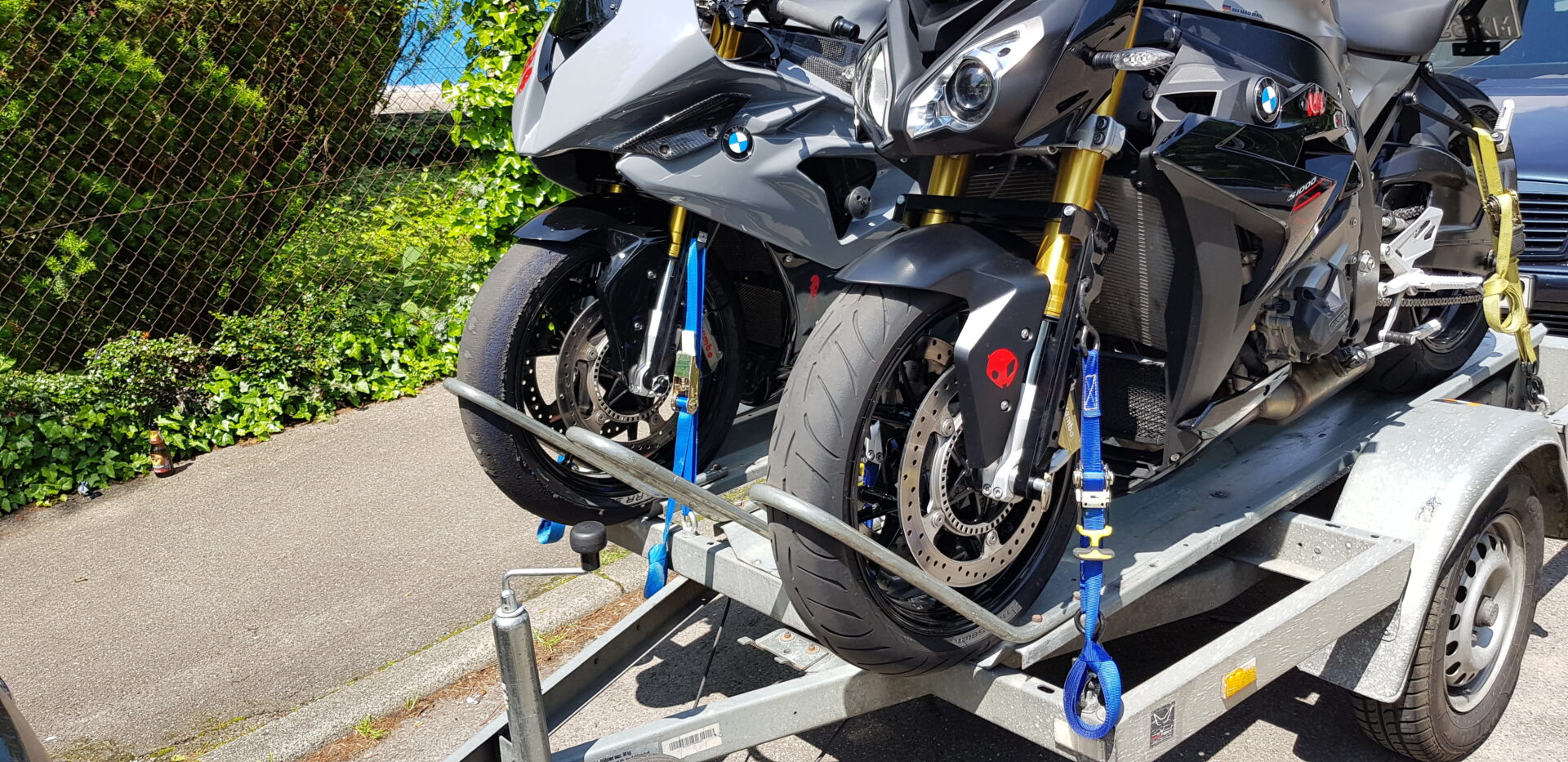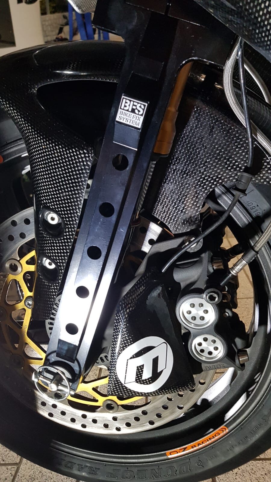 Ein Set CARBON Brake cooler mit einem Set BFS Bike-Fix-System Motorrad Transport System.