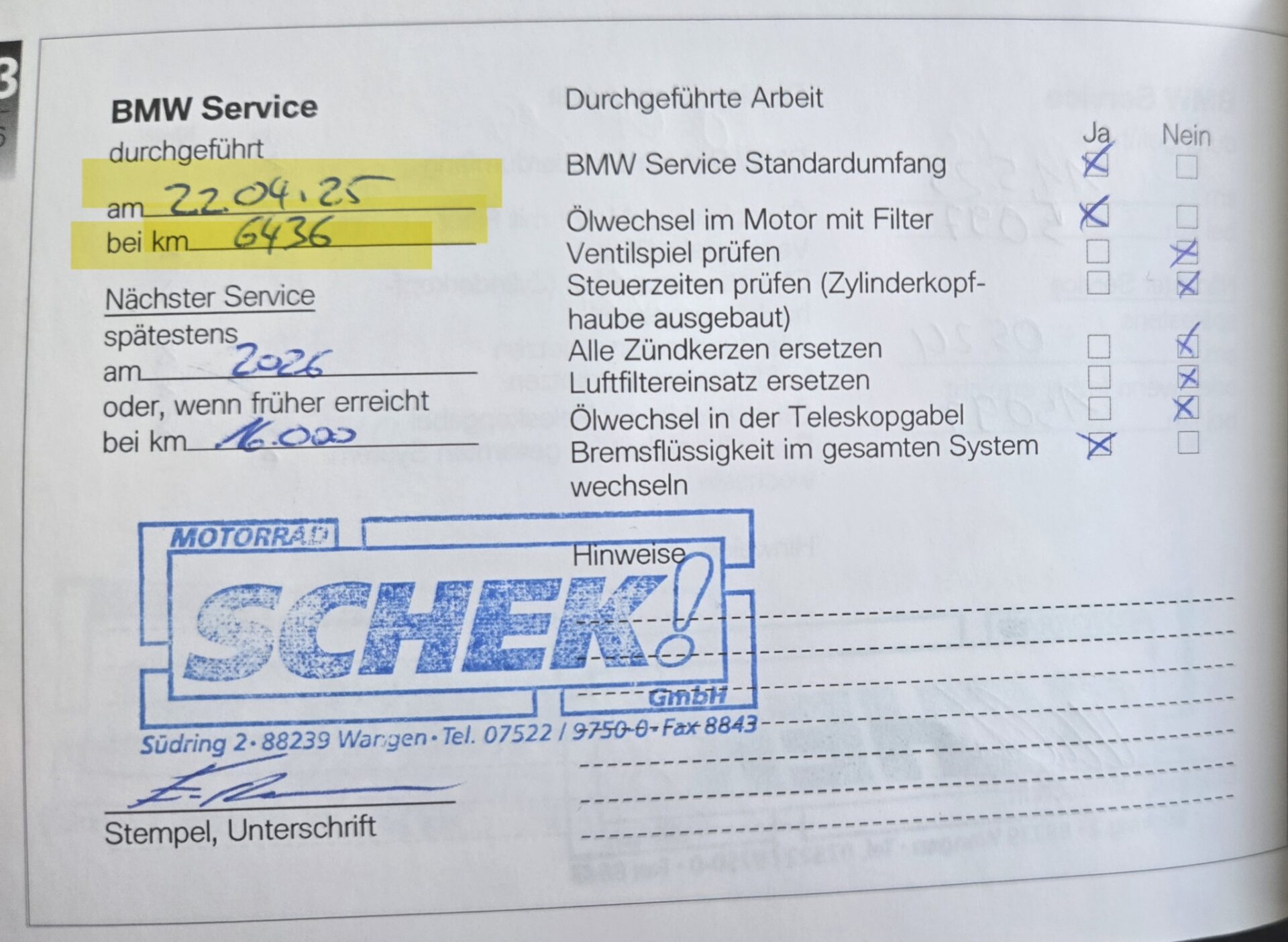 - Bremsflüssigkeit vorne und hinten gewechselt bei 6.436 KM – 2025