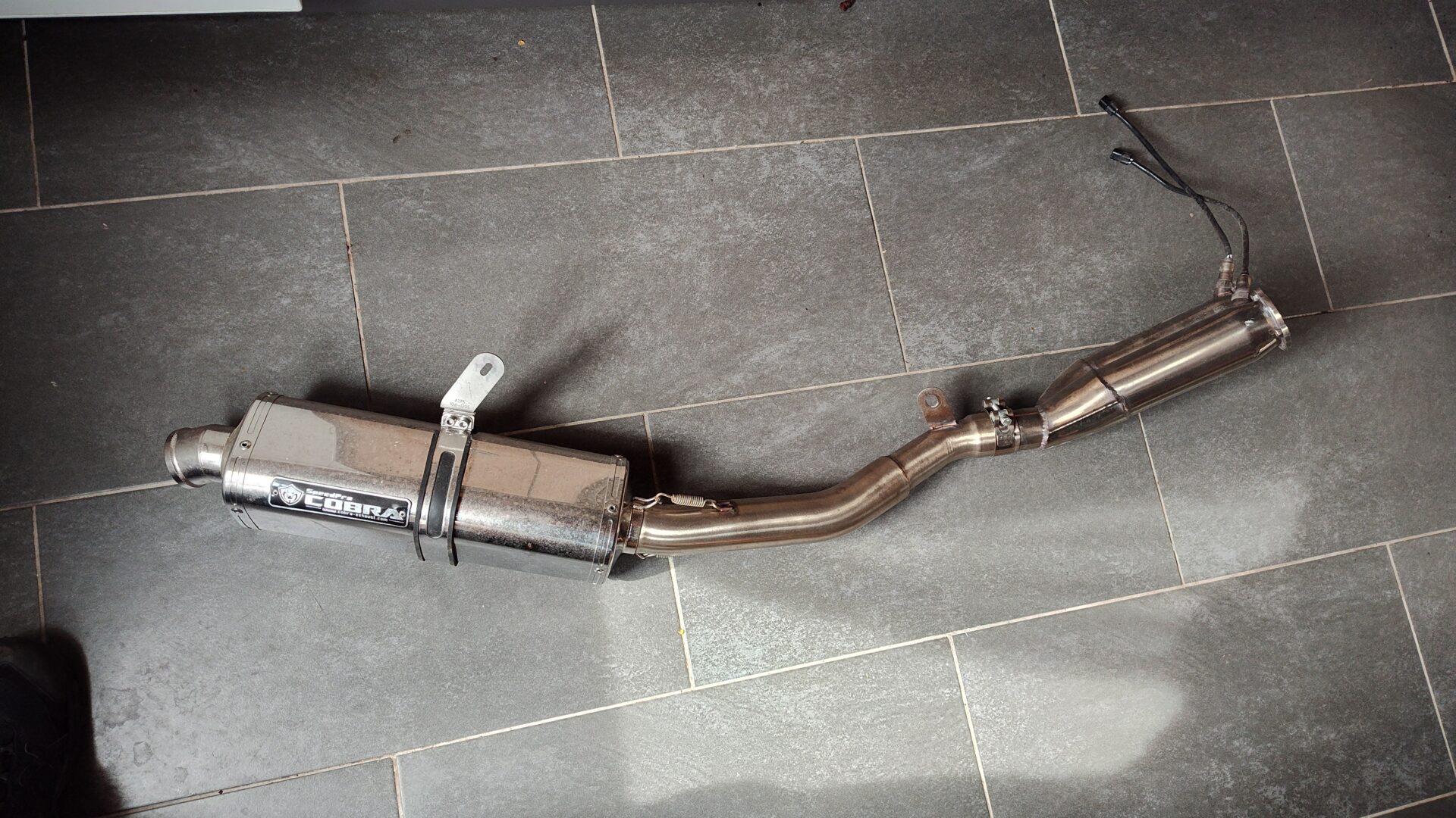 Verkaufe einen fast neuen Sportauspuff aus meiner ZX-10R Bj06, war für 500m montiert, also so ziemlich neu vom Zustand her. Es sind keine Kats verbaut. Lambdasonden können mitgegeben werden.