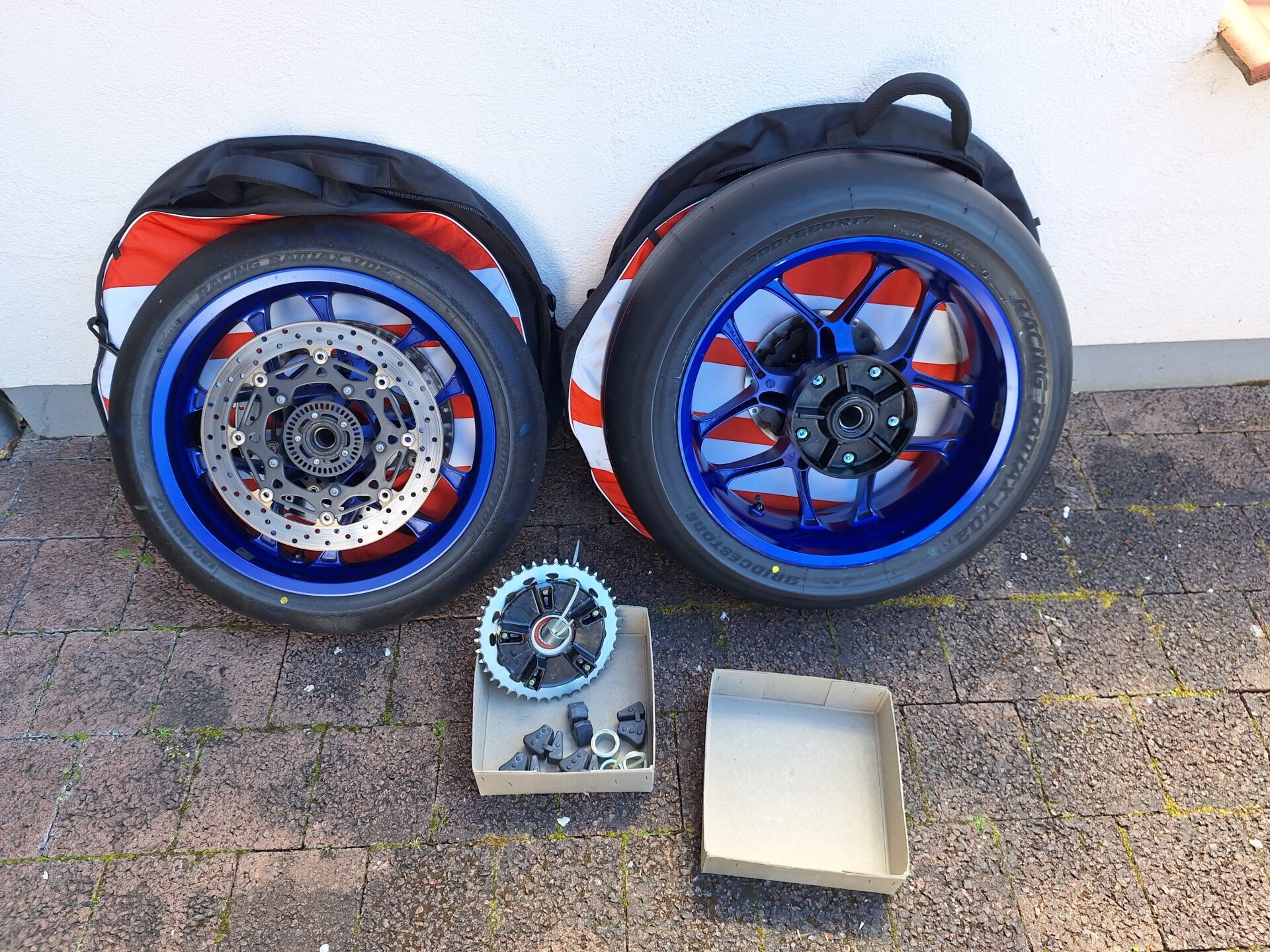 Wegen Hobbyaufgabe biete ich einen gebrauchten Blauen Satz Felgen für Yamaha RN32 oder RN 49 an.