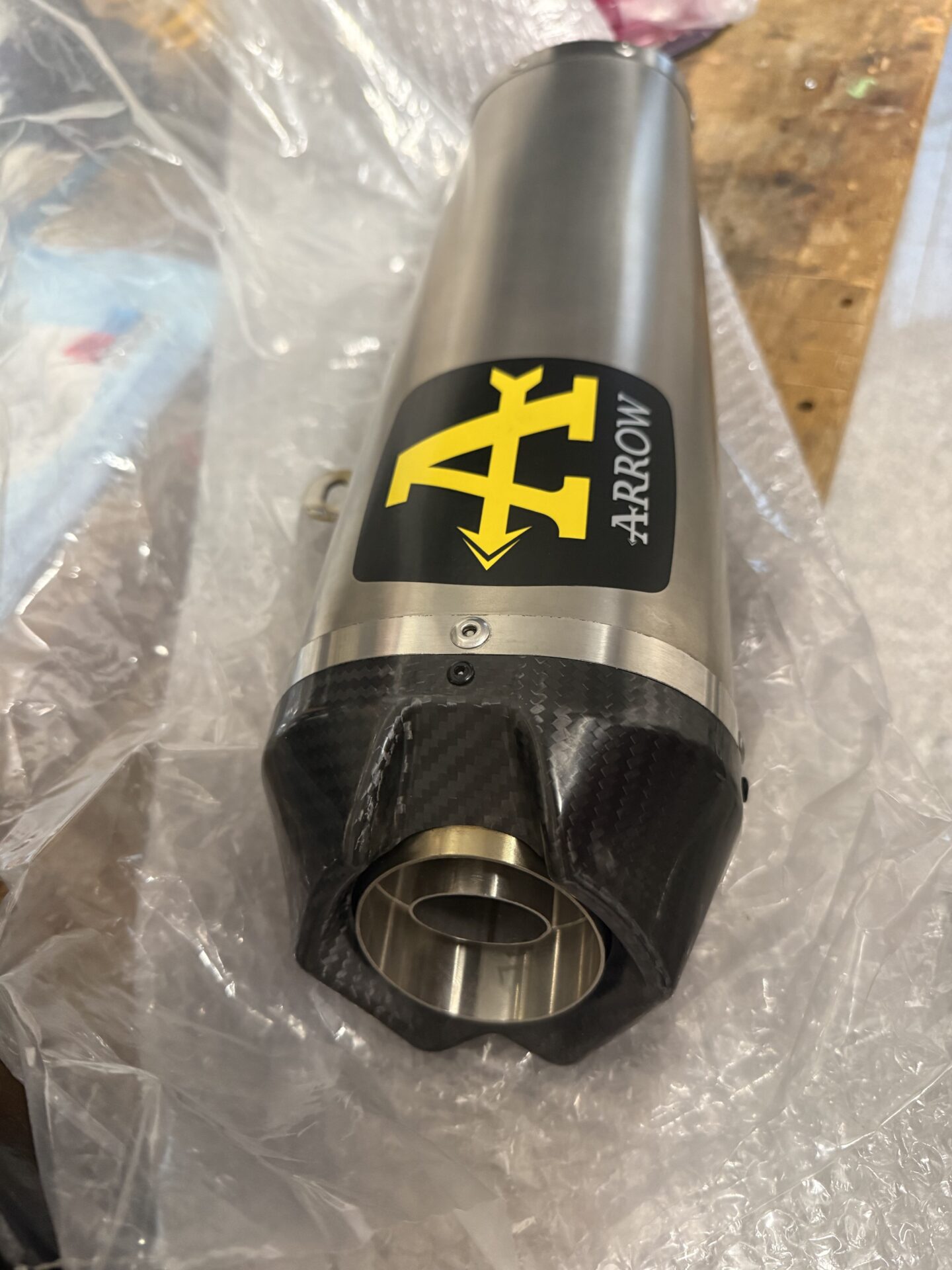 Verkaufe neuen Arrow Racetech Endschalldämpfer mit 60mm Anschlussdurchmesser. Inkl. DB Eate