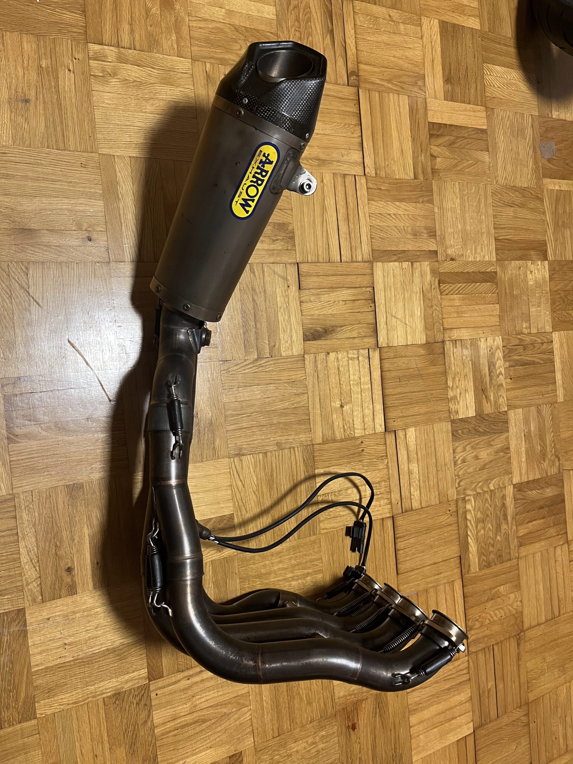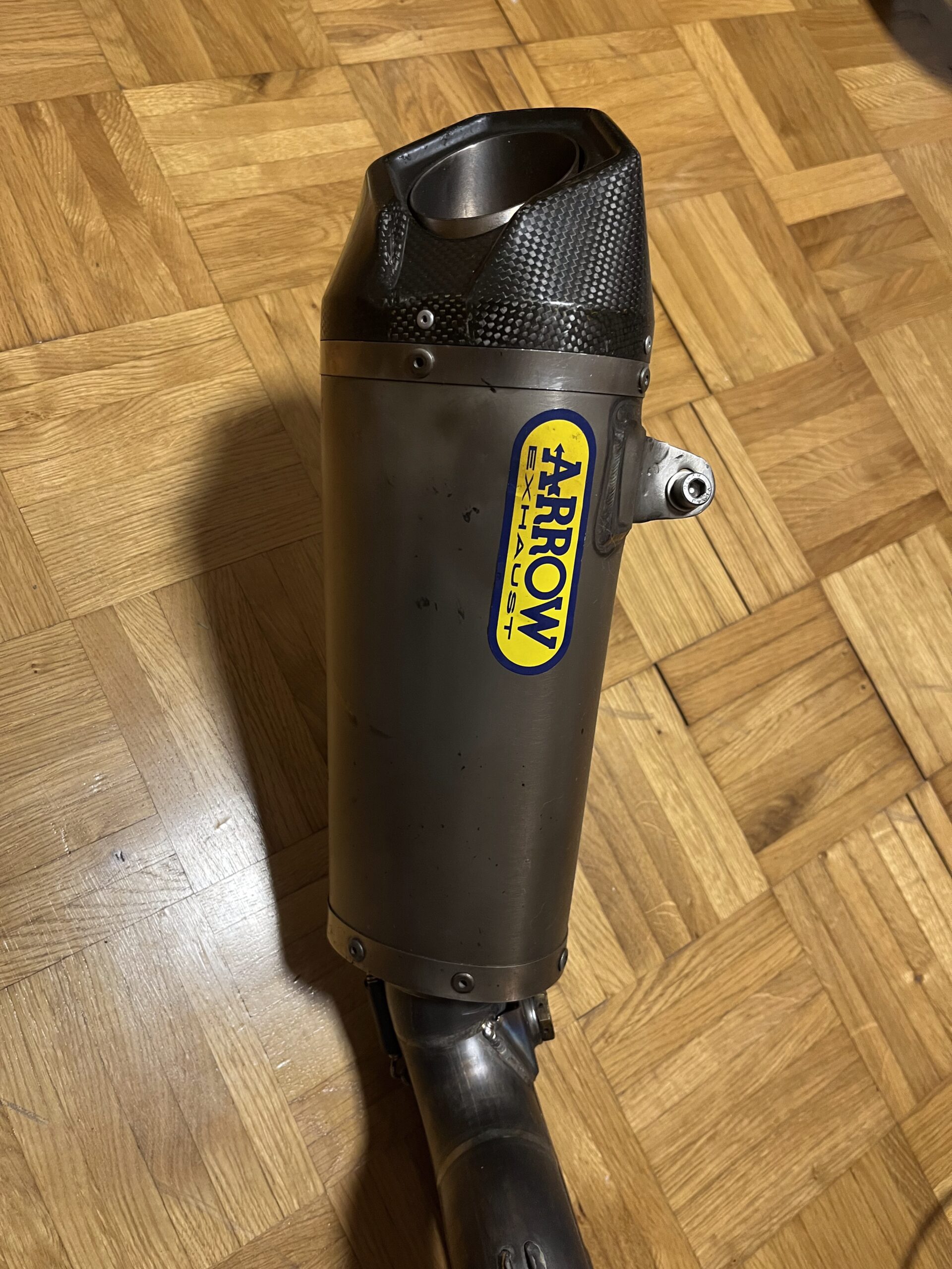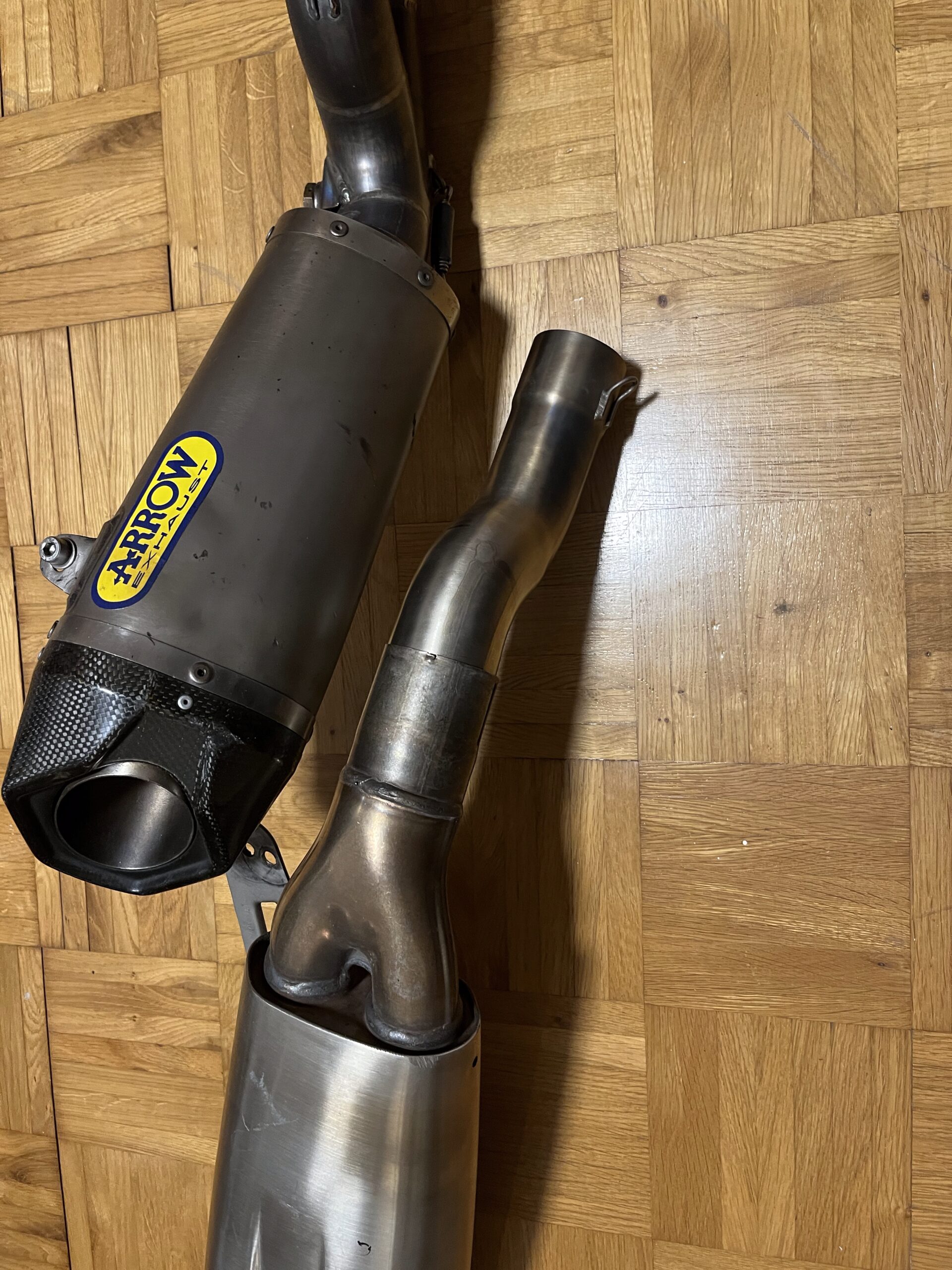 Arrow-Krümmer, Adapterrohr und original Dämpfer Edelstahl. Arrow-Dämpfer Titan.