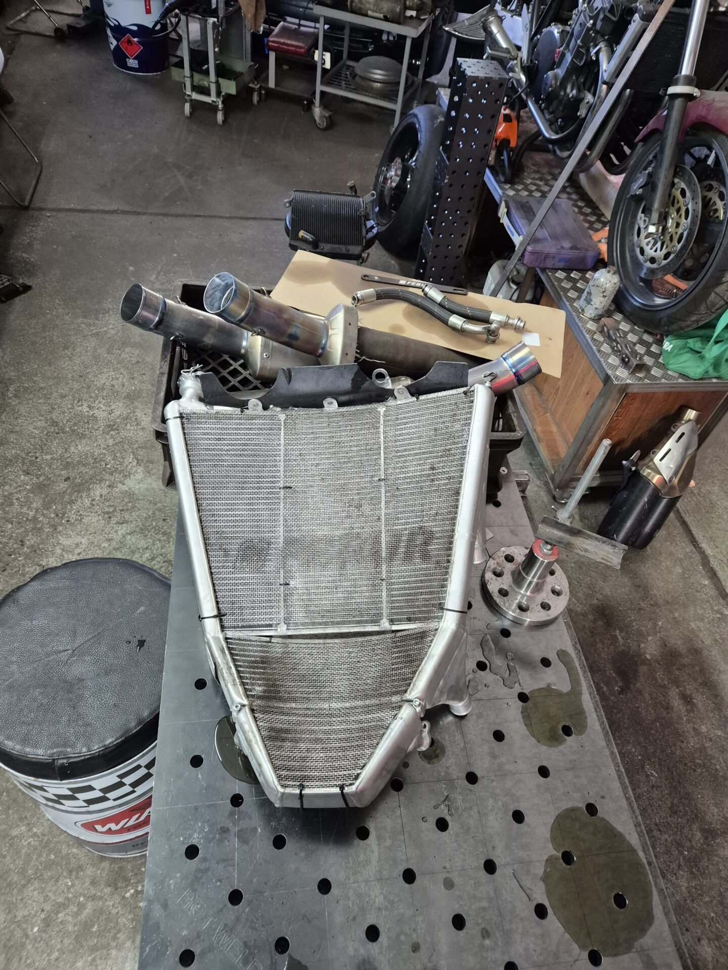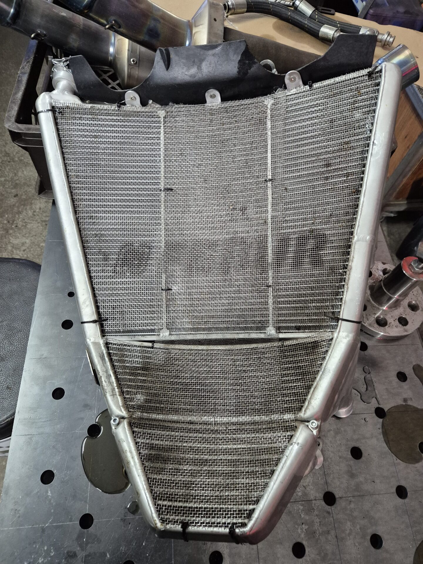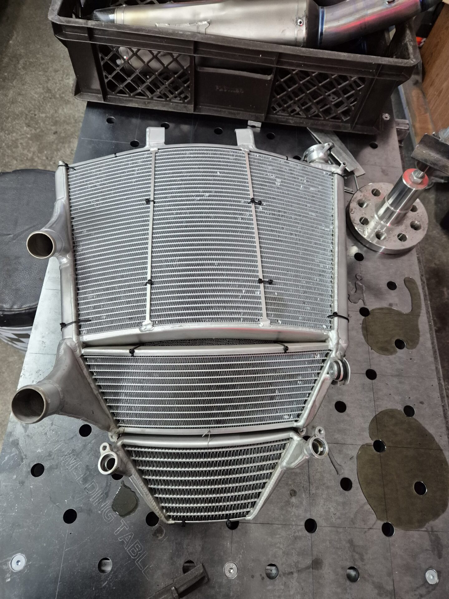 Febur Racingkühler für BMW M oder S 1000 ab 2019, eine Saison gelaufen voll funktionstüchtig, dicht, mit Ölkühlerschläuchen, ein sichtbarer Treffer im Wasserkühler aber wie beschrieben absolut dicht. Sehr hohe Kühlleistung, bin immer mit teilweiser Abdeckung gefahren.